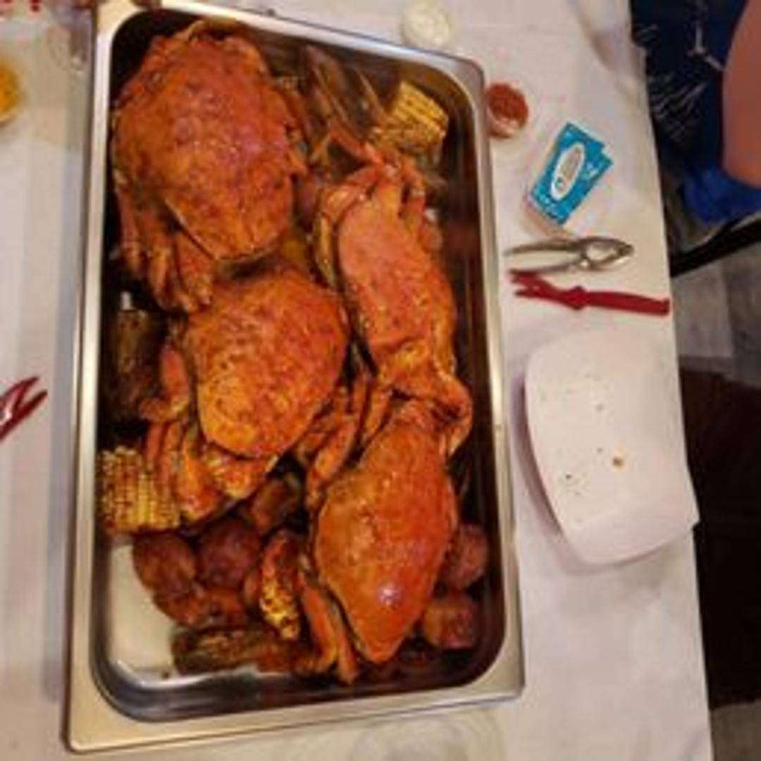 A seafood feast featuring a selection of crab, shellfish, and other delectable seafood items. Contents of the combo may vary and can be customized with different seasoning levels.