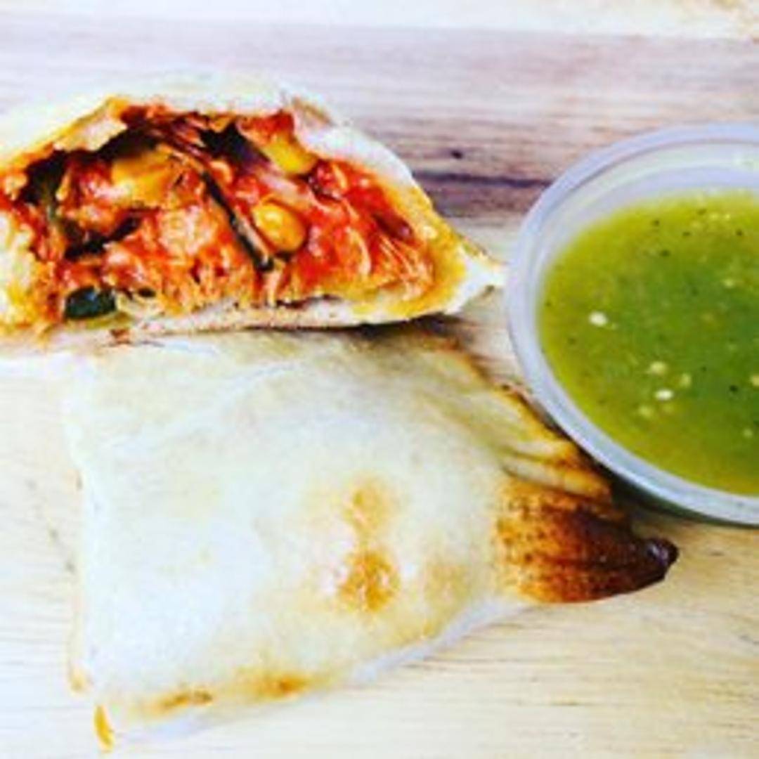 A hearty empanada featuring tender, locally sourced chicken, blended with classic Southwestern flavors, including mild chiles, onions, and spices, all wrapped in a delicious, baked crust.