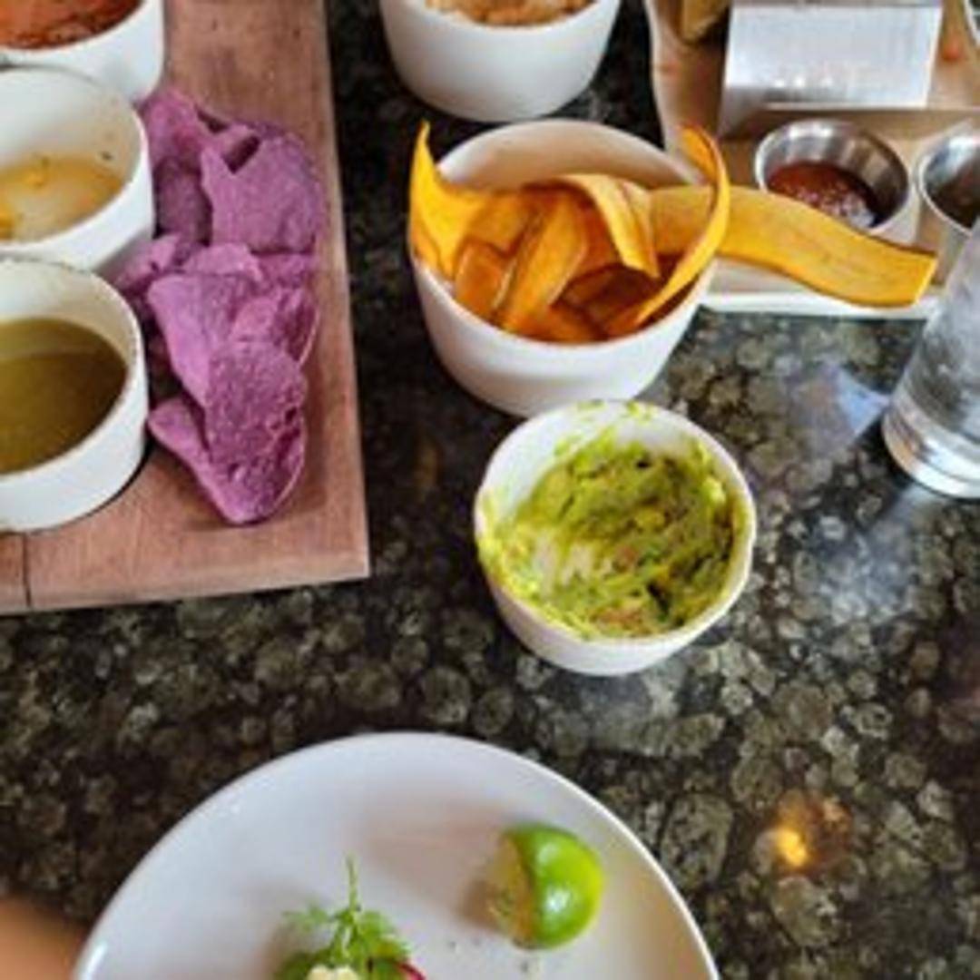 A selection of three house-made salsas, ranging from mild to spicy, served with crispy tortilla chips. Perfect for sampling different flavors.