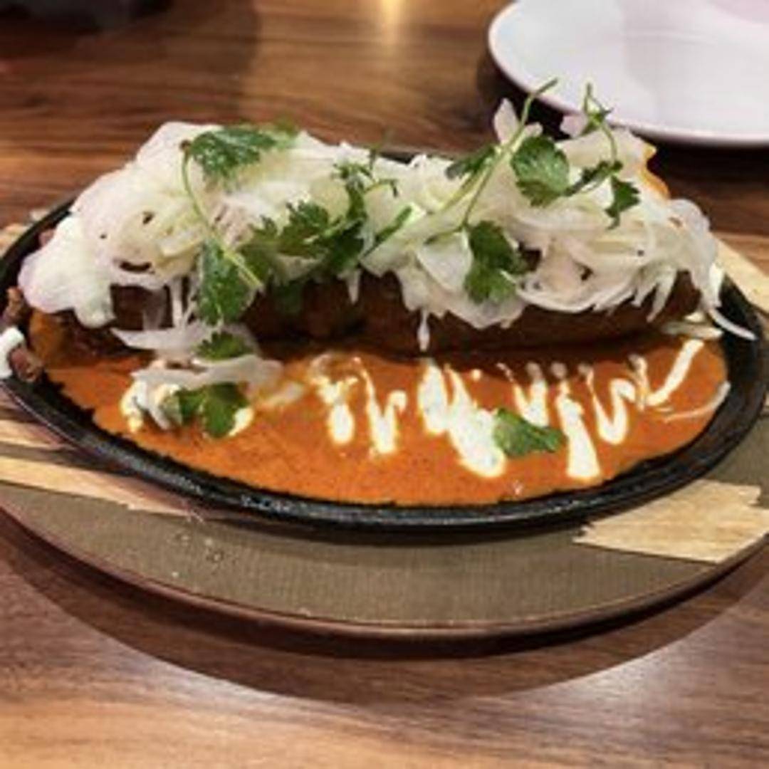 A roasted poblano pepper stuffed with cheese, dipped in egg batter, and fried until golden brown, topped with your choice of sauce.