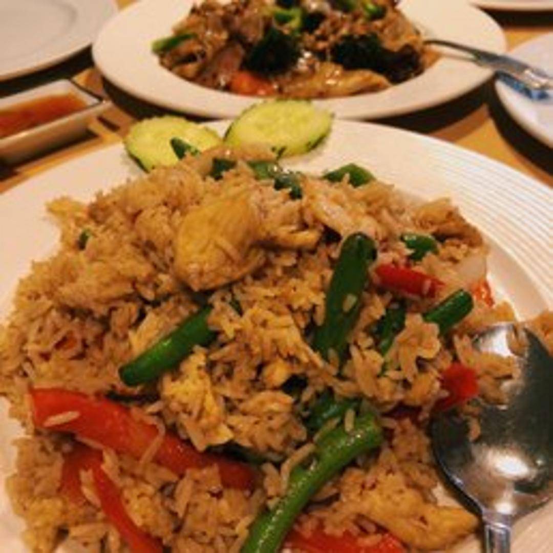 Stir-fried with fresh Thai basil leaves, your choice of protein (chicken, pork, beef, tofu, or shrimp), onions, bell peppers, garlic, and chili peppers in a savory brown sauce. Served with steamed rice.