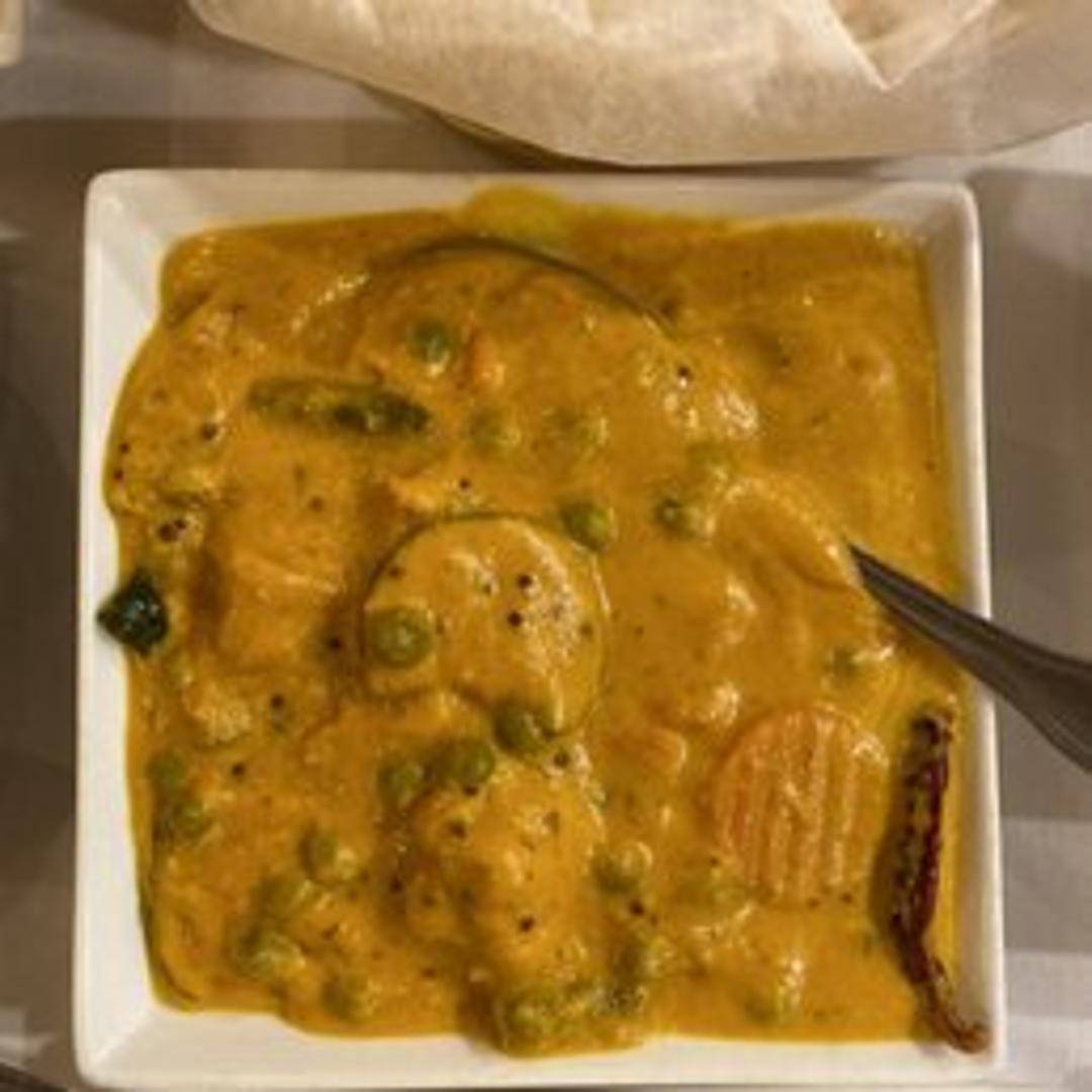 A wholesome and flavorful vegetarian curry featuring a medley of fresh vegetables (such as potatoes, carrots, peas, and green beans) simmered in a luscious and mildly spiced coconut milk-based gravy. A creamy, aromatic, and comforting plant-based option.