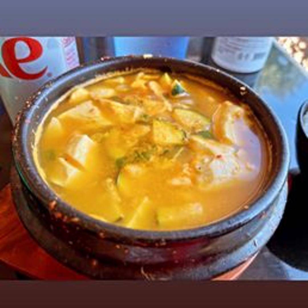 A spicy Korean stew made with silken tofu, vegetables, and your choice of protein (such as beef, pork, or seafood). Includes an egg cracked into the soup while simmering. Served bubbling hot with a side of rice.