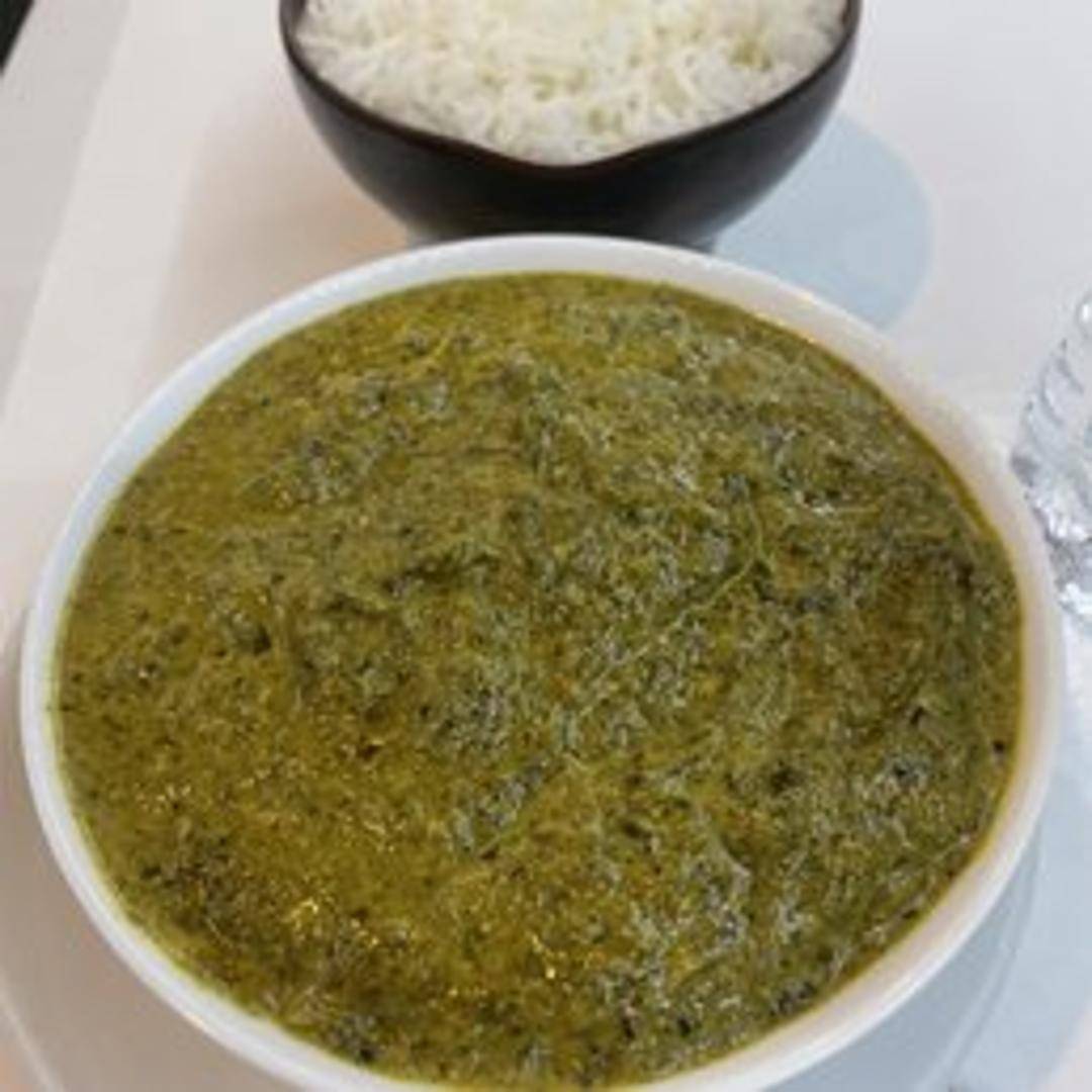 A classic Indian vegetarian dish featuring fresh spinach (palak) puree cooked with generous cubes of soft, homemade Indian cheese (paneer). This vibrant green curry is delicately spiced with aromatic ginger, garlic, green chilies, and a hint of garam masala, creating a rich, creamy, and nourishing dish perfect with rice or naan.
