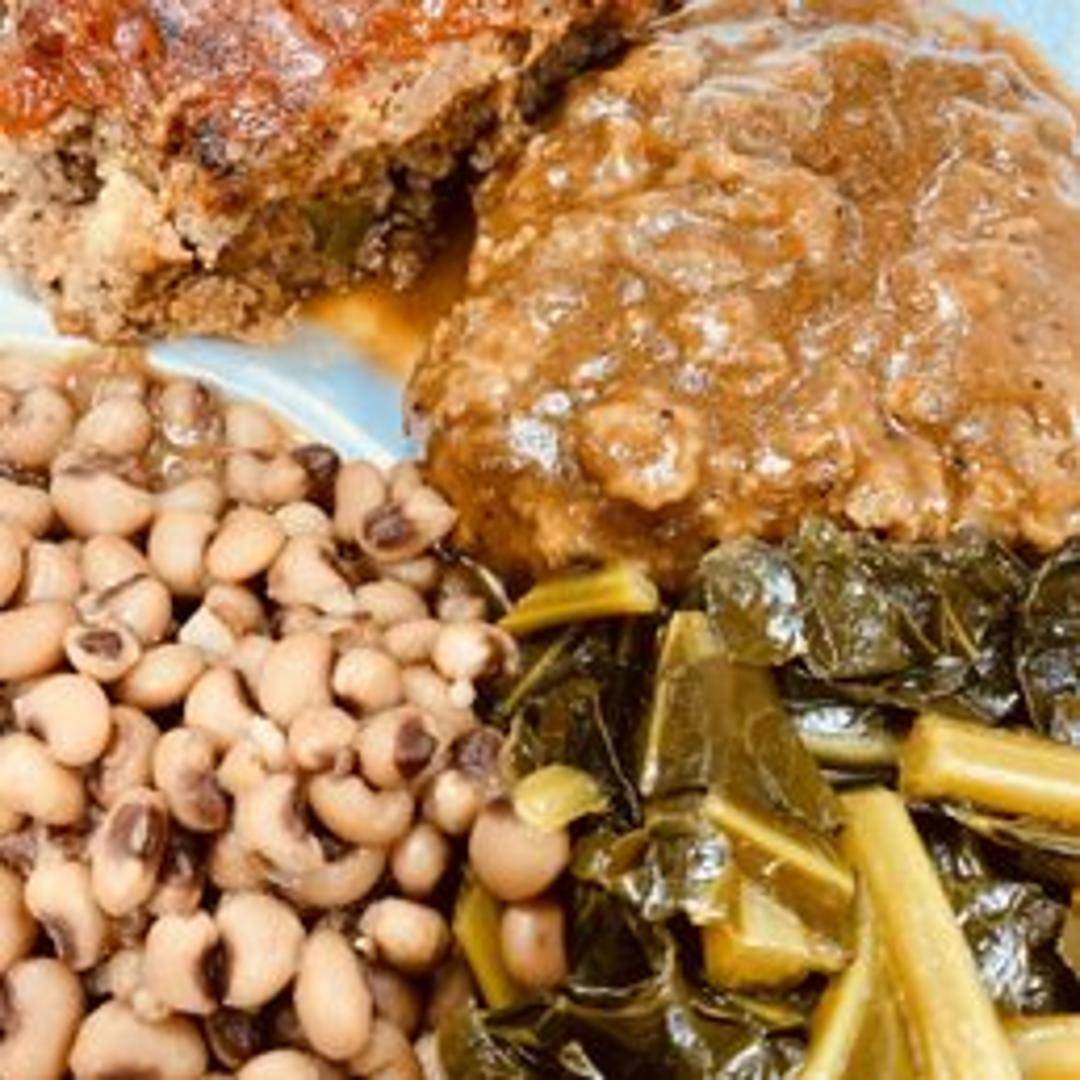 Indulge in a true soul food classic: tender, pan-seared pork chops slow-cooked to perfection in a rich, savory brown gravy. Infused with aromatic onions and bell peppers, each chop is exceptionally juicy and melts in your mouth, offering a comforting and deeply satisfying experience.