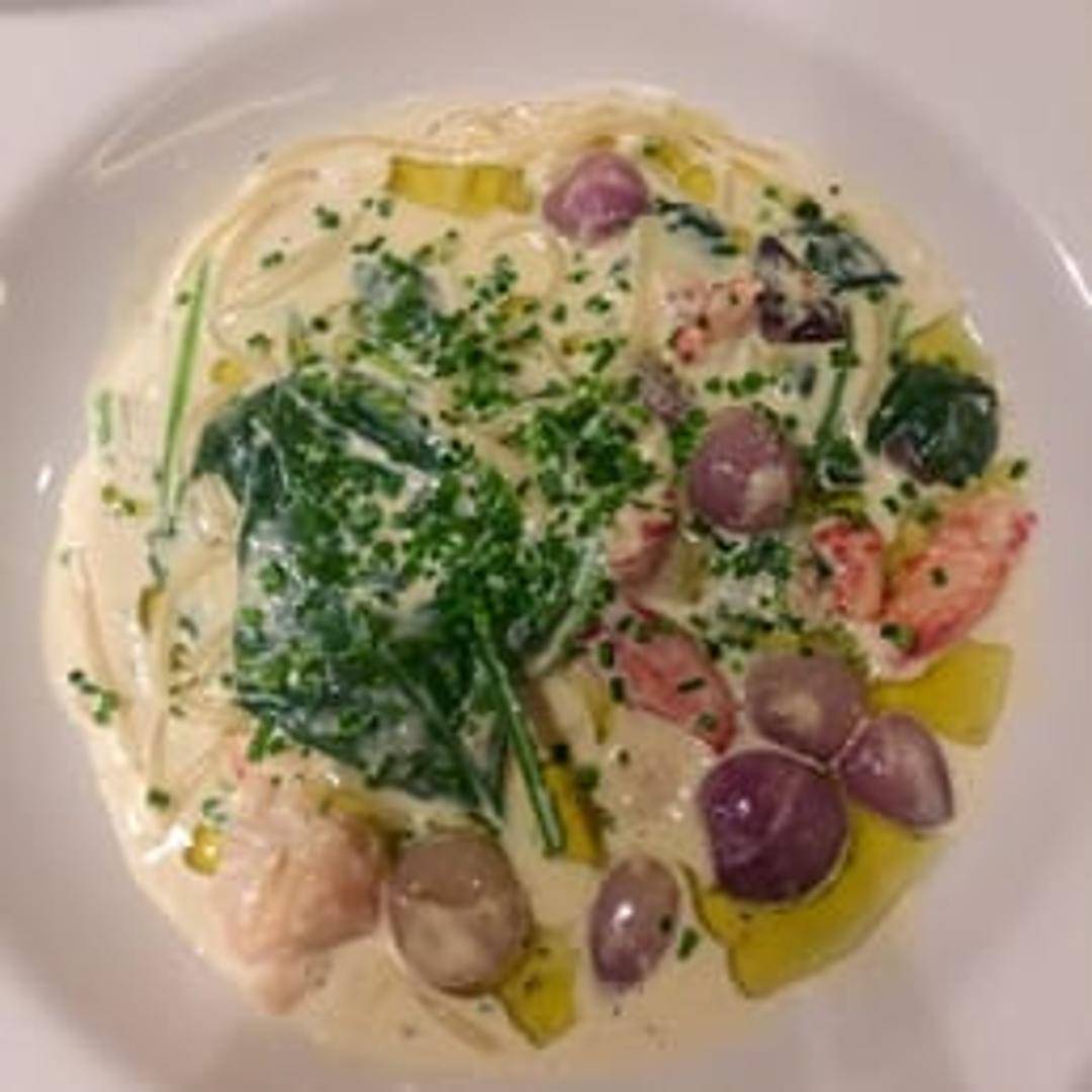 A luxurious twist on a classic pasta dish. Fresh lobster meat is combined with a creamy carbonara sauce, featuring pancetta, eggs, Parmesan cheese, and black pepper, all tossed with perfectly cooked pasta.