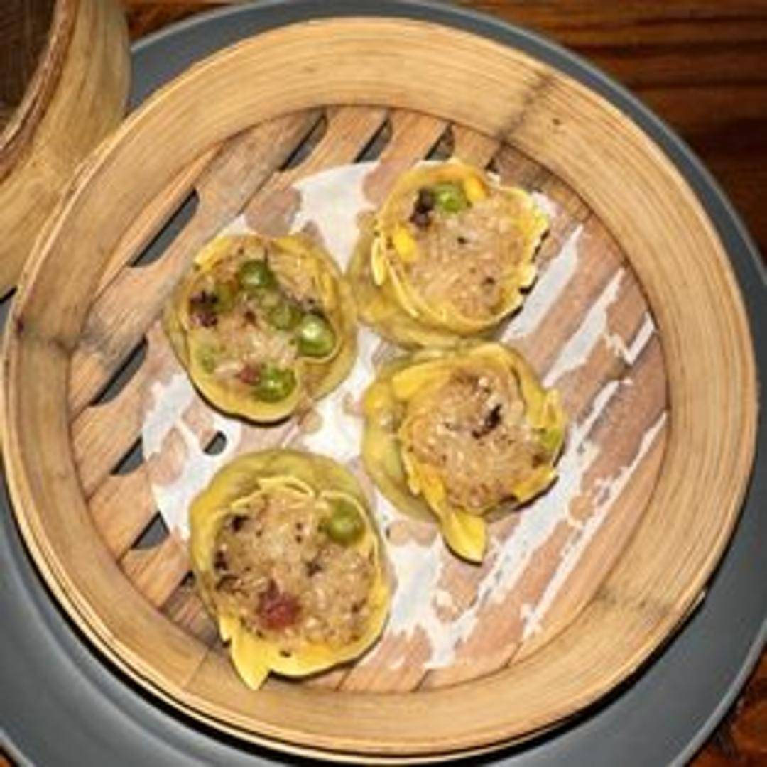 Steamed shu mai filled with a savory-sweet glutinous rice mixture. A classic dim sum treat.