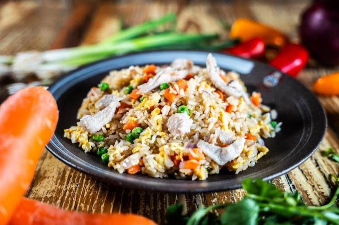 Classic fried rice with diced chicken, vegetables, and soy sauce. A simple and satisfying dish.