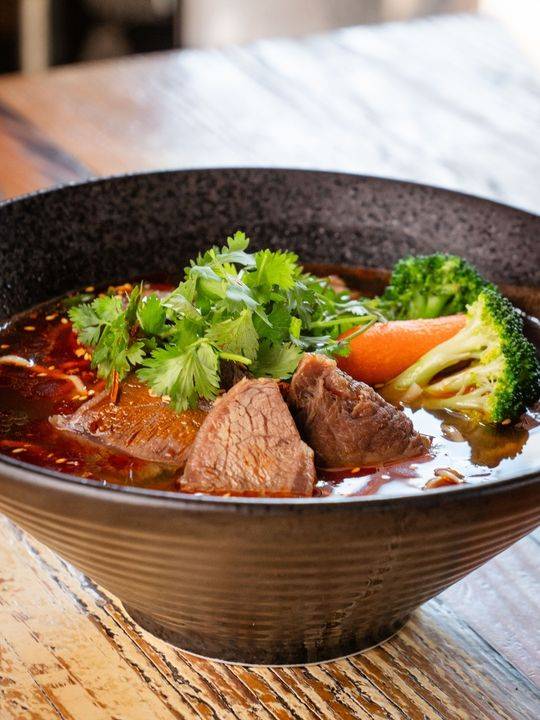 A flavorful beef broth with tender braised beef, noodles, and vegetables. Nana's signature recipe.