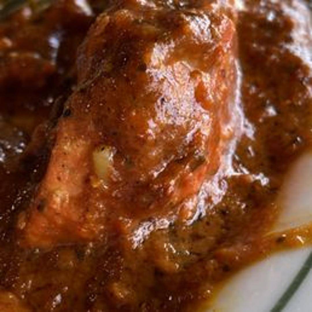Grilled chicken tikka cooked in a creamy and flavorful tomato-based sauce with a blend of Indian spices.