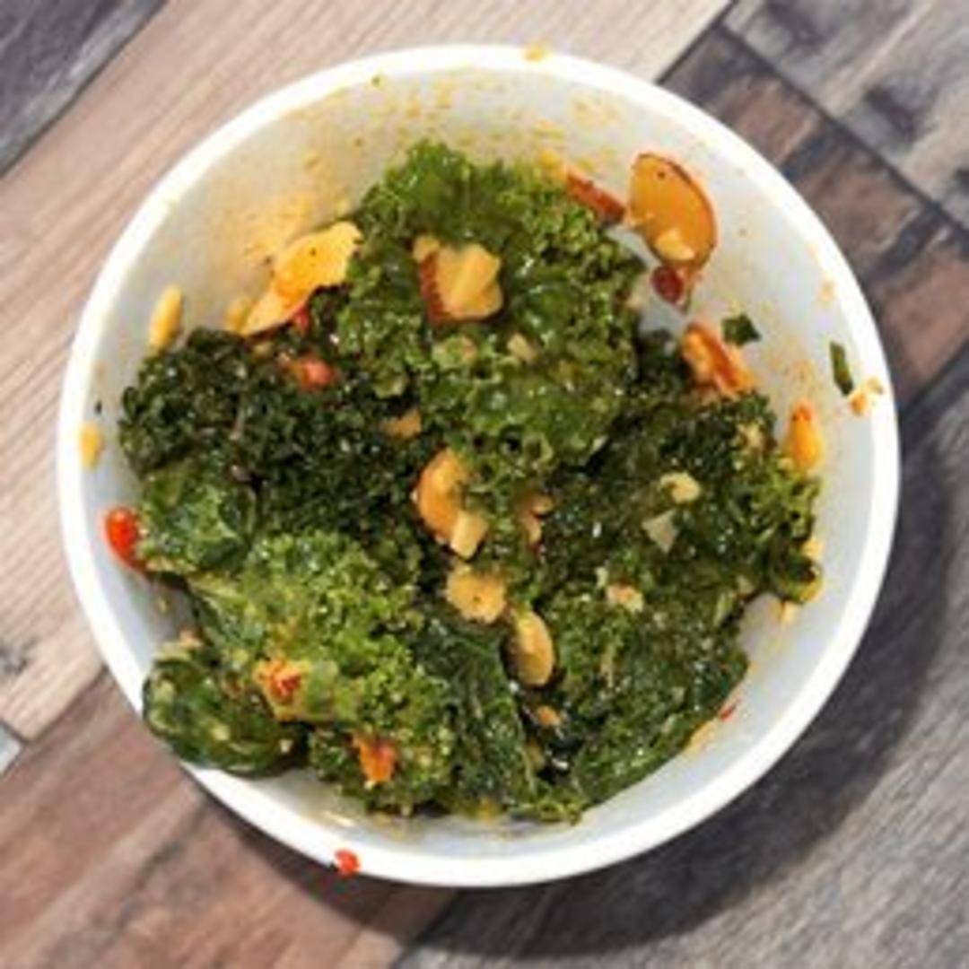 A vibrant and flavorful wrap packed with fresh kale, a spicy dressing (likely with a chili or sriracha base), and a variety of complementary ingredients. Expect a blend of textures and tastes, potentially including vegetables like bell peppers, carrots, or cucumbers, and perhaps a protein source like chickpeas, tofu, or grilled chicken. This is a healthy and zesty choice.