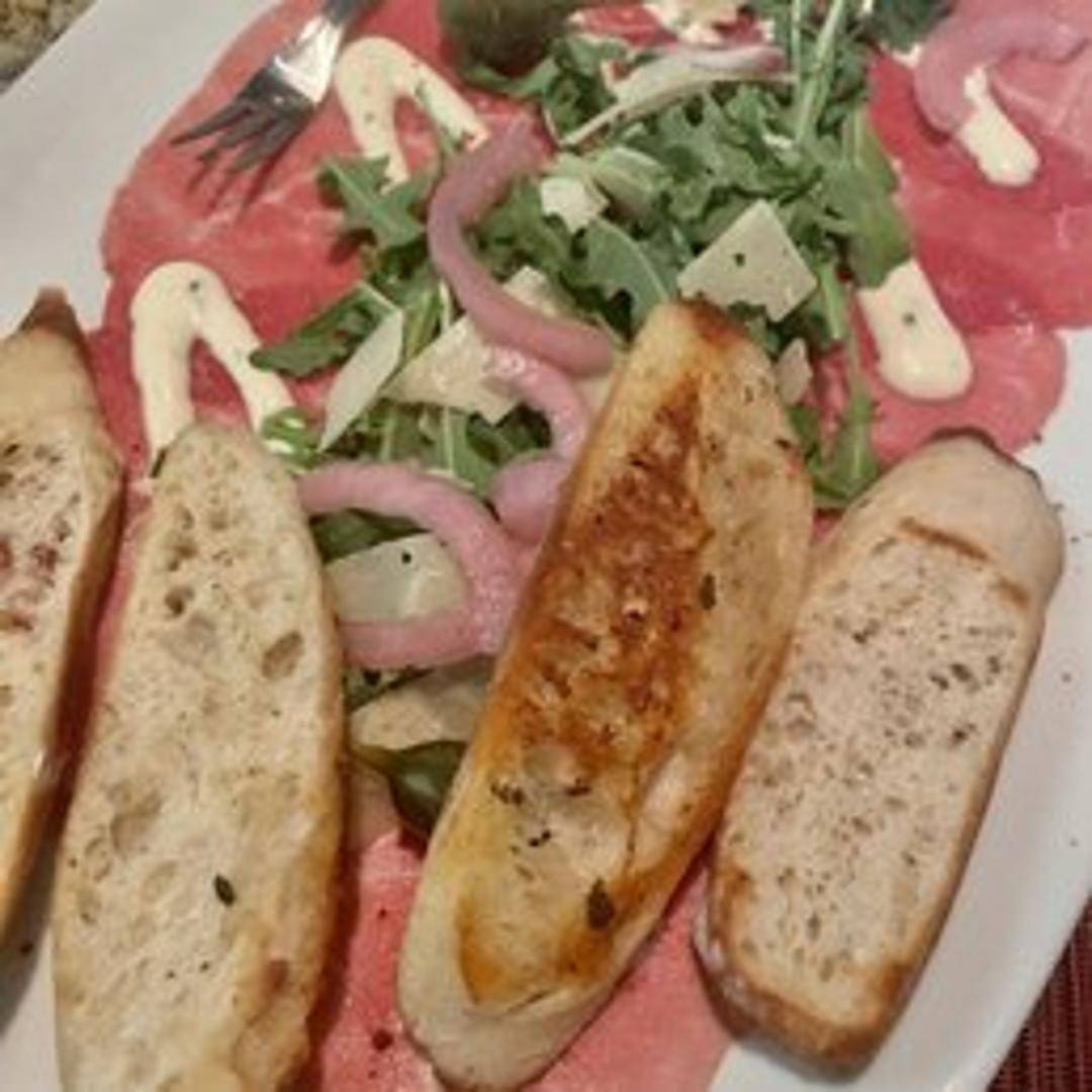 Paper-thin slices of prime, tender beef tenderloin, exquisitely arranged and lightly drizzled with premium extra virgin olive oil and a bright squeeze of fresh lemon juice. Crowned with peppery wild arugula, briny capers, and generous shavings of aged Parmigiano-Reggiano, creating a sophisticated and refined starter that speaks to classic Italian elegance.