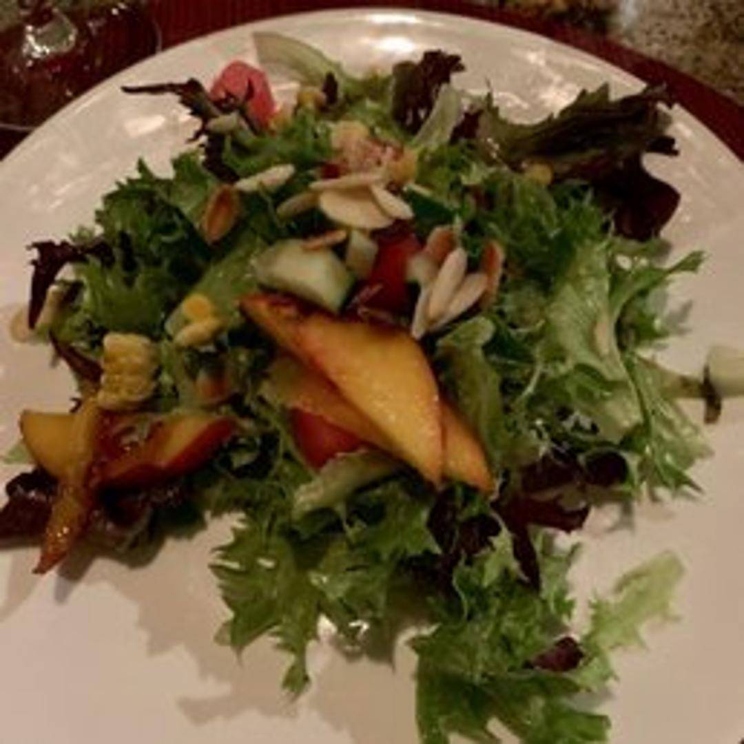 A refreshing signature, the Napa Salad captures the vibrant spirit of wine country. Crisp mixed greens are tossed with candied pecans, crumbled goat cheese, and fresh seasonal berries, all lightly dressed with a bright and zesty white balsamic vinaigrette. A perfect balance of sweet, tangy, and savory, it’s a light yet satisfying start to any meal.