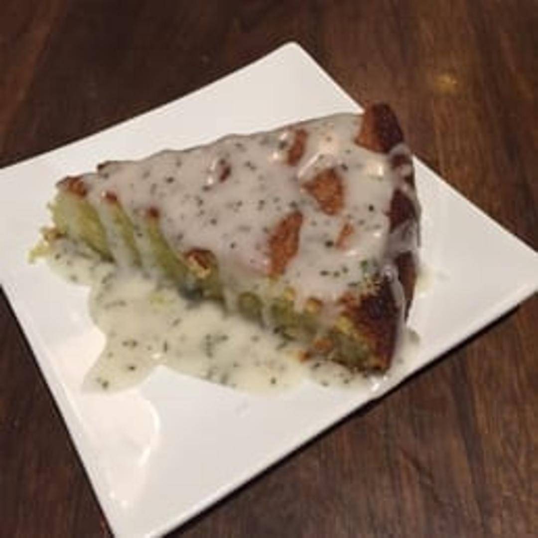 A moist and tender cake made with high-quality olive oil, often featuring a light citrus flavor. The texture is delicate and slightly dense, with a golden-brown crust. May be served plain or with a dusting of powdered sugar, a drizzle of honey, or fresh fruit.