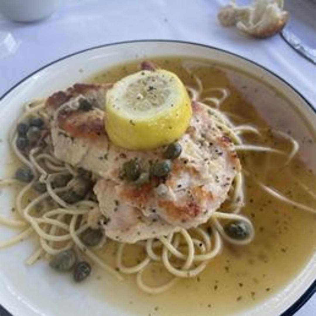 Tender chicken breast lightly coated and pan-fried, then served in a bright and tangy lemon-butter sauce with capers. Served with a side of pasta or vegetables.