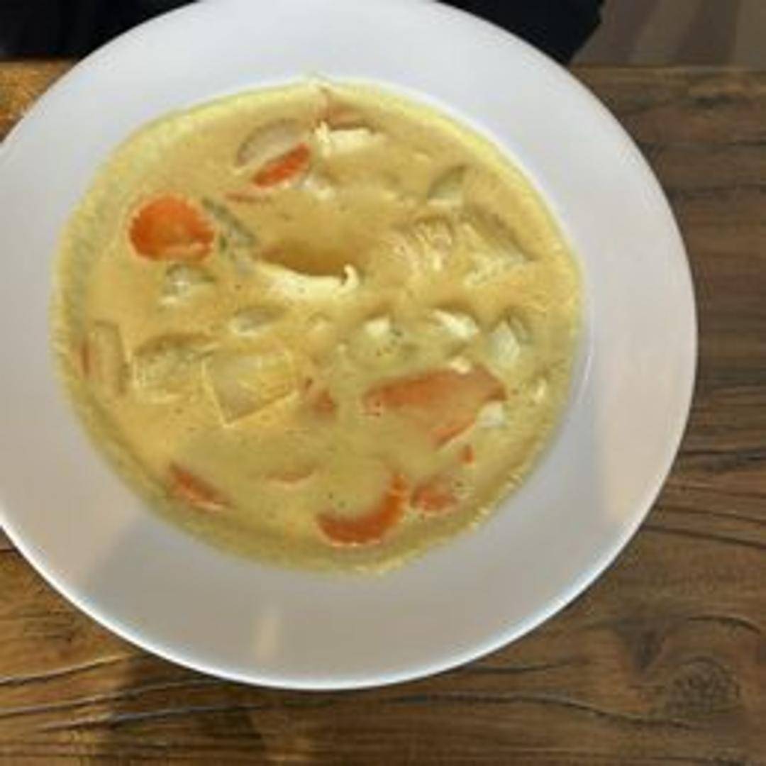 A mild and aromatic curry made with yellow curry powder, coconut milk, potatoes, carrots, and onions. Served with steamed rice and your choice of protein.