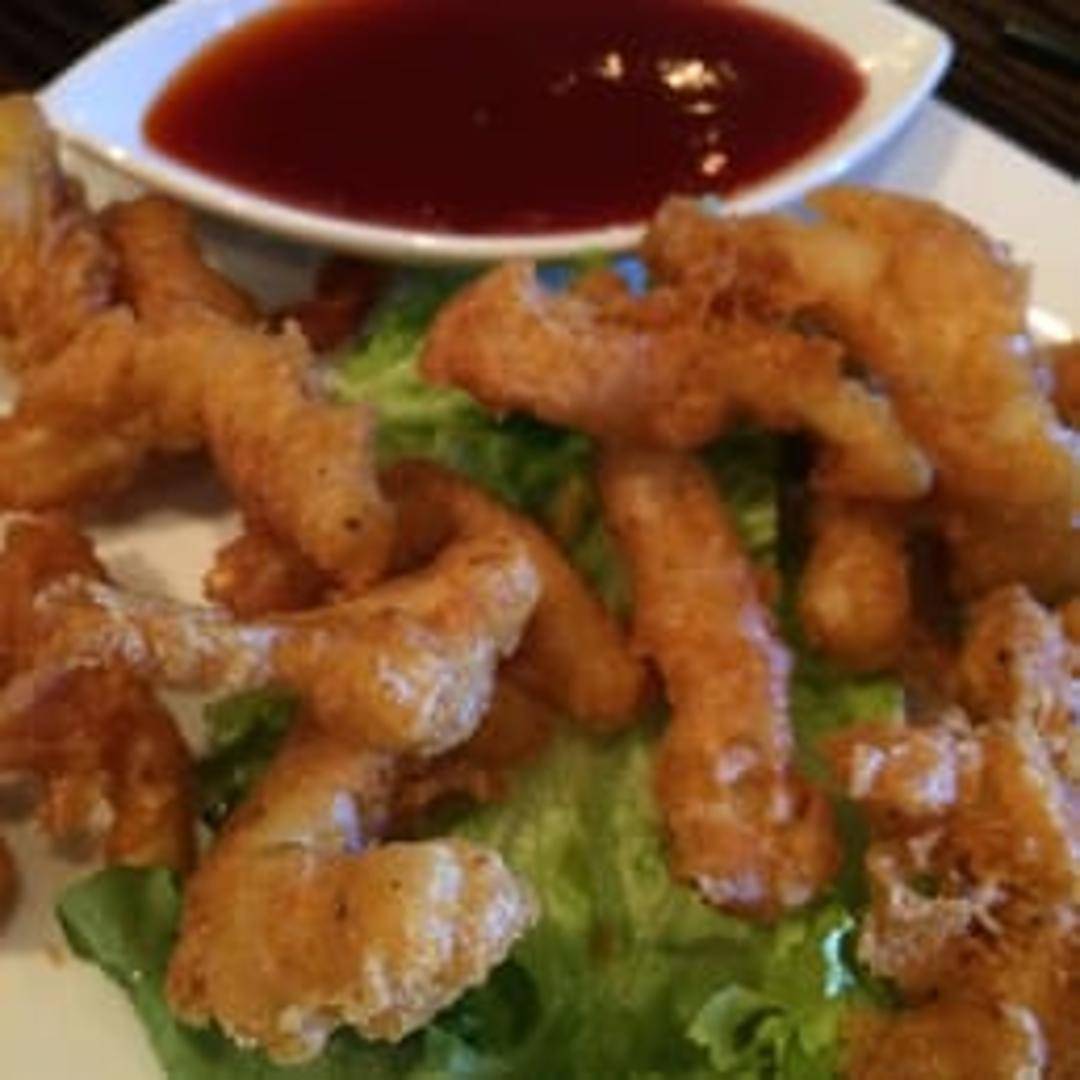 Crispy, lightly battered calamari rings and tentacles, fried to a golden brown. Served with a side of sweet chili sauce.