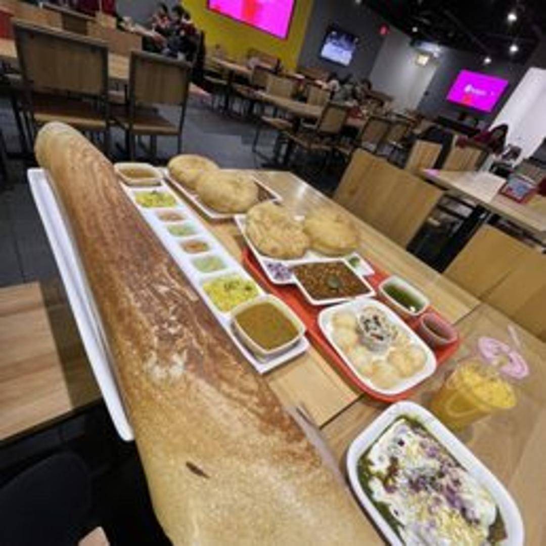A thin and crispy crepe made from fermented rice and lentil batter, filled with a spiced potato and onion mixture. Served with sambar and coconut chutney.