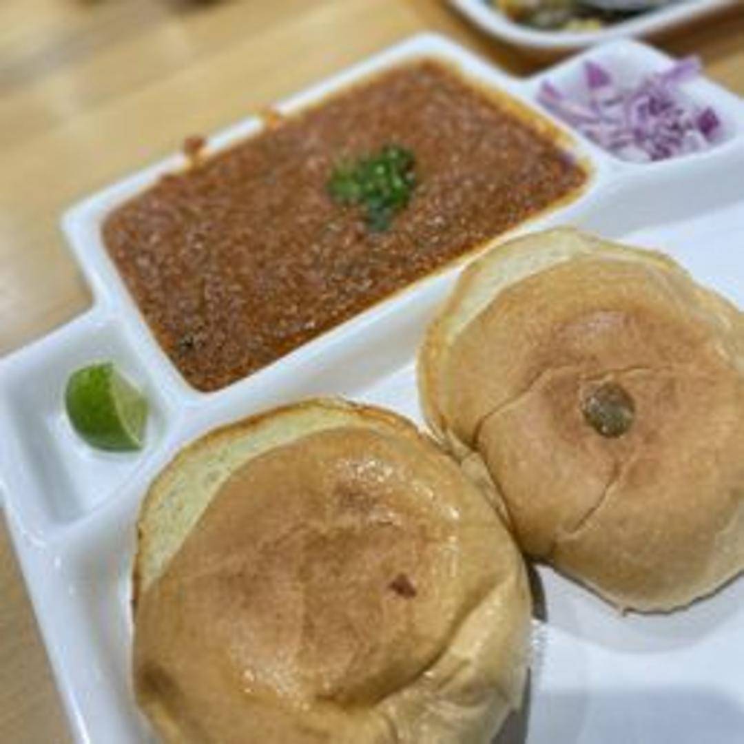 Pav Bhaji (a thick vegetable curry) wrapped inside a thin and crispy dosa. Served with sambar and chutney.