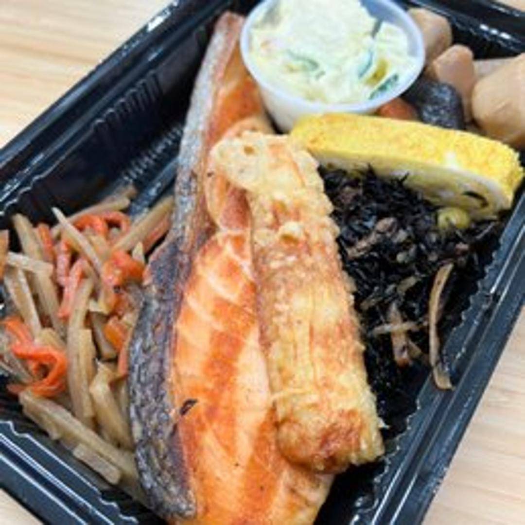 Salmon marinated or cooked with sake (Japanese rice wine), imparting a subtle sweetness and enhancing its natural flavor.