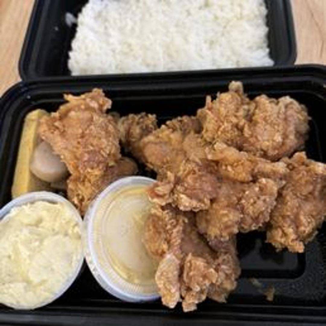 A complete meal featuring juicy and crispy Japanese fried chicken (karaage), served with rice, side dishes, and pickled vegetables in a bento box.