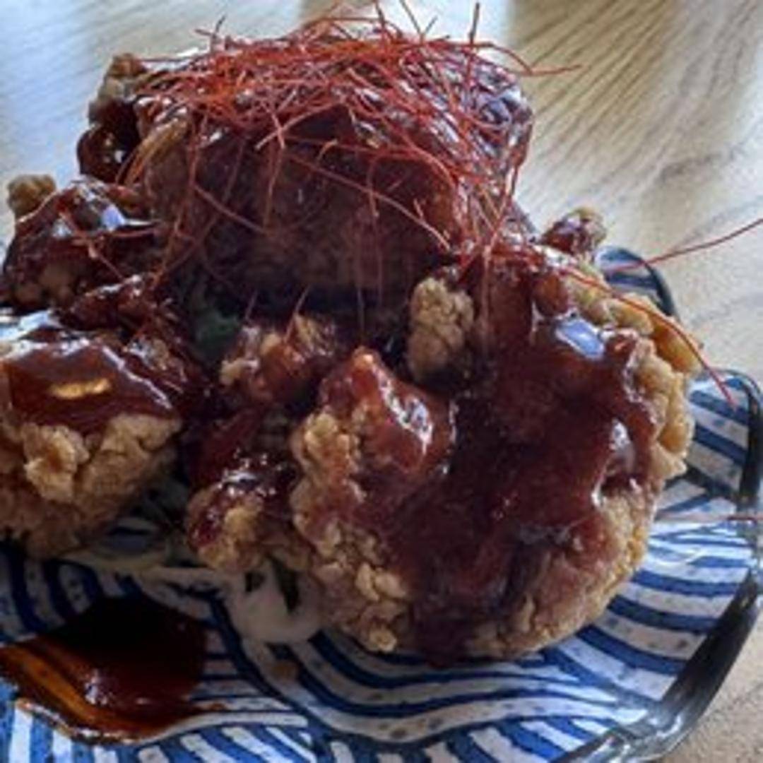 Tender chicken pieces tossed in a vibrant sauce that balances sweetness with a kick of spice, served with steamed rice.