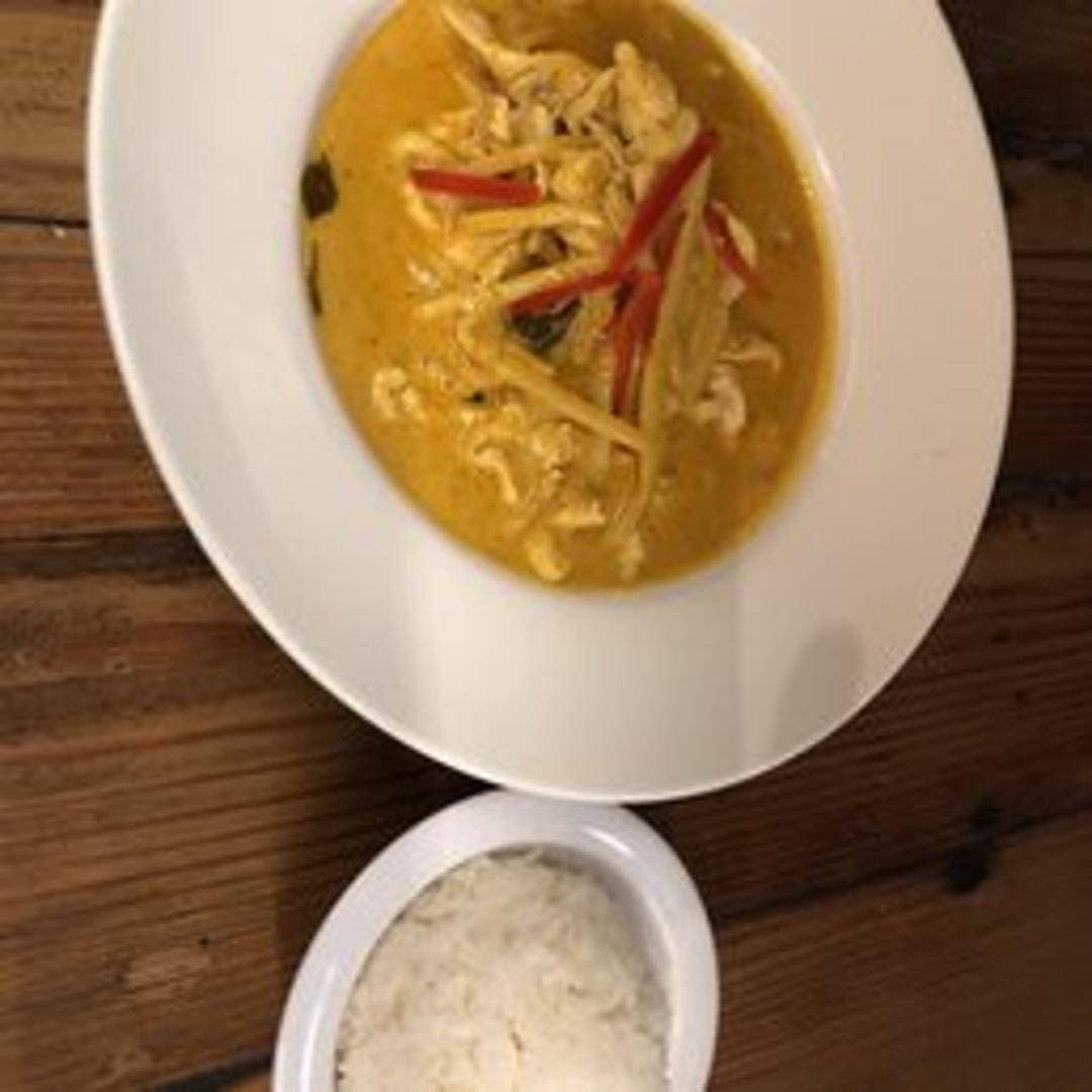 A mild and creamy Thai curry distinguished by its vibrant yellow hue, derived from turmeric and curry powder in its paste. Cooked with rich coconut milk, tender potatoes, and soft onions, this curry offers a sweeter and less spicy profile compared to its red or green counterparts. It's a comforting and aromatic dish, often prepared with your choice of protein, providing a subtle warmth and earthy undertones.