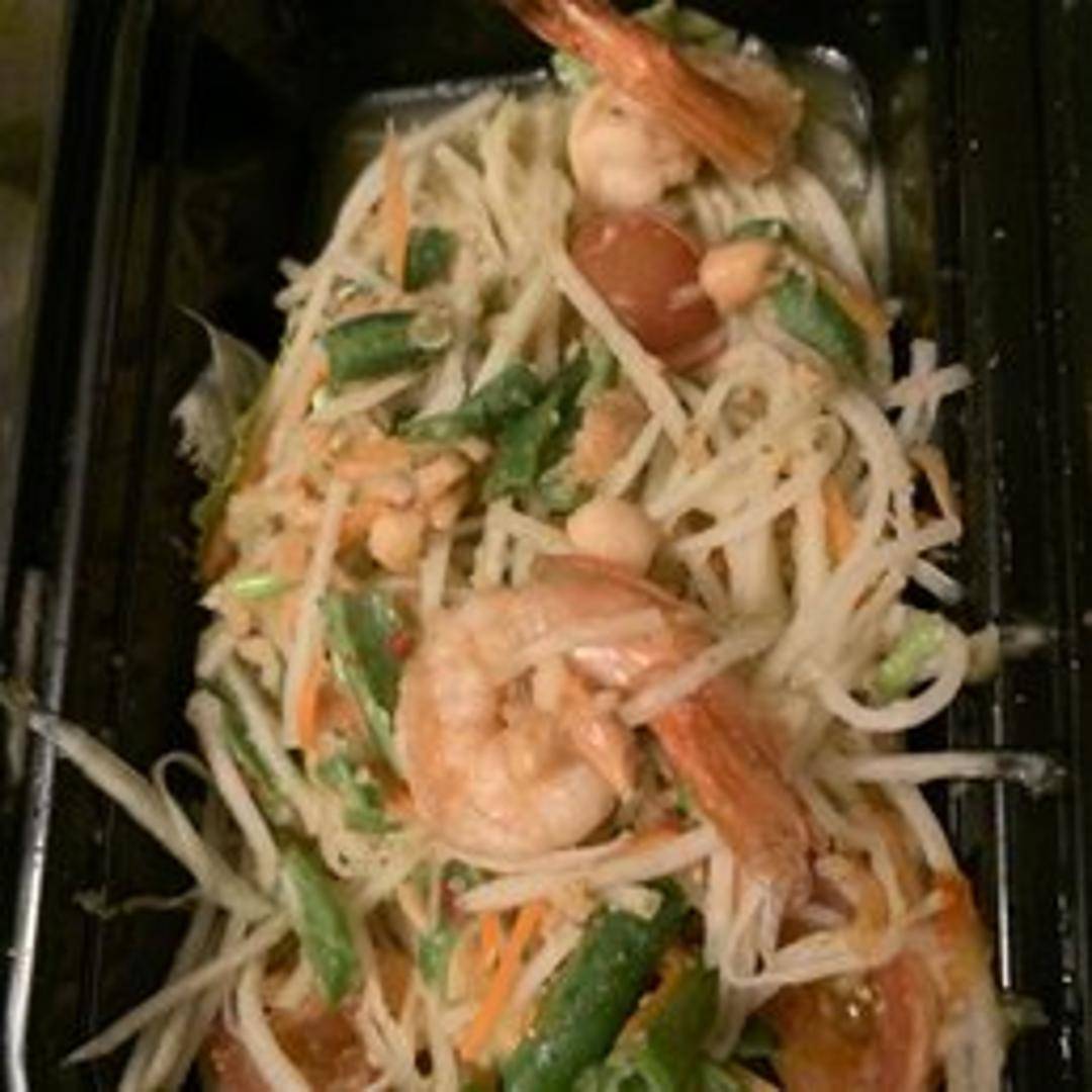 A vibrant and refreshing take on the classic Thai salad, our Papaya Salad Deluxe features crisp, shredded green papaya tossed with fresh green beans, ripe cherry tomatoes, and crunchy roasted peanuts. It's dressed in a perfectly balanced blend of zesty lime juice, savory fish sauce, a hint of sweet palm sugar, aromatic garlic, and fiery bird's eye chilies, creating an exquisite harmony of spicy, sour, sweet, and savory notes. This deluxe version offers an elevated experience, emphasizing premium freshness and a richer, more complex flavor profile.