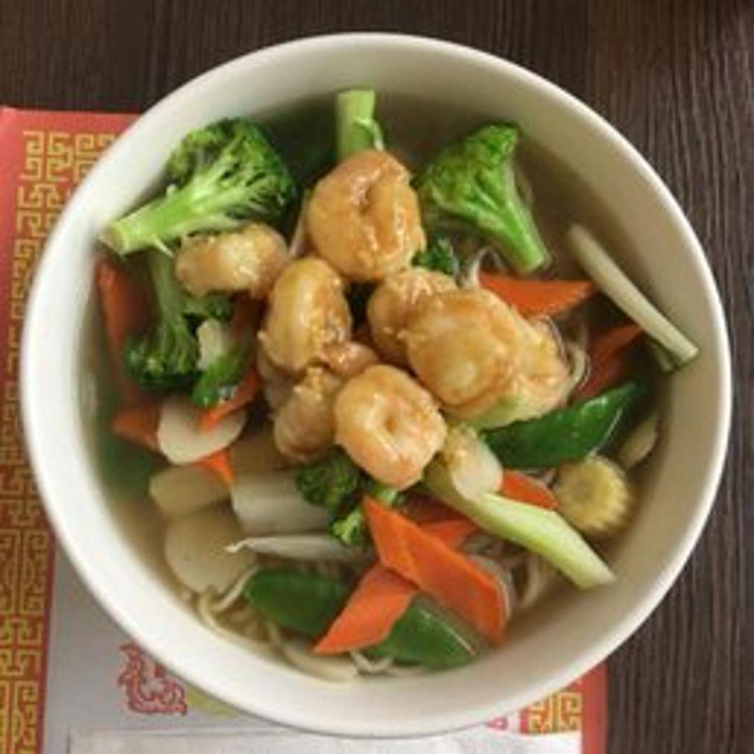 A comforting and classic soup featuring tender chicken, egg noodles, and a medley of fresh vegetables in a light and savory broth.