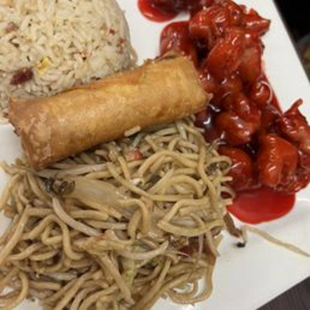 Tender pieces of pork, battered and deep-fried to a golden crisp, then coated in a tangy and sweet sauce made with pineapple, bell peppers, and onions. Served with a side of steamed white rice.