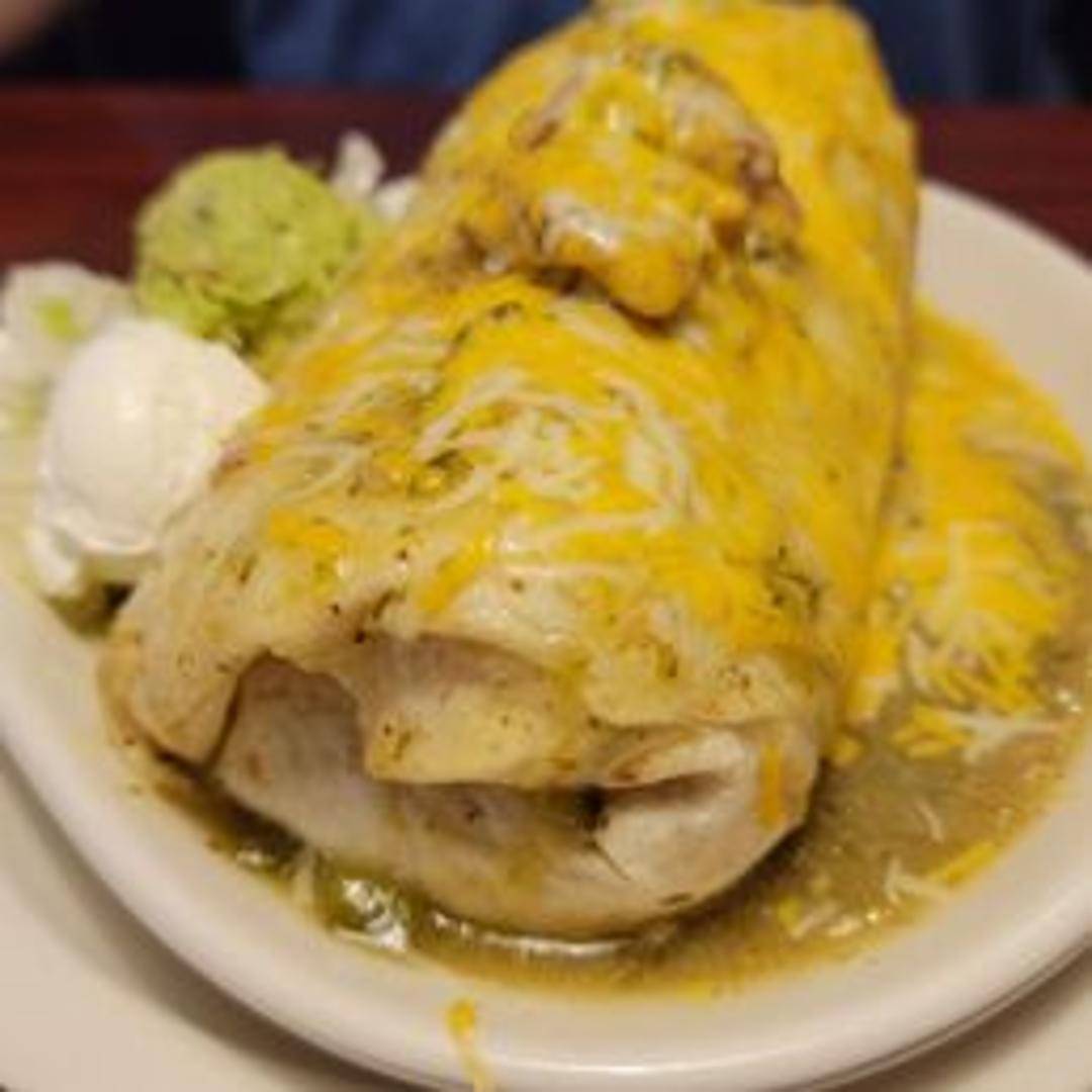 Scrambled eggs, potatoes, cheese, and your choice of bacon, sausage, or chorizo wrapped in a warm flour tortilla. Smothered in green chile.