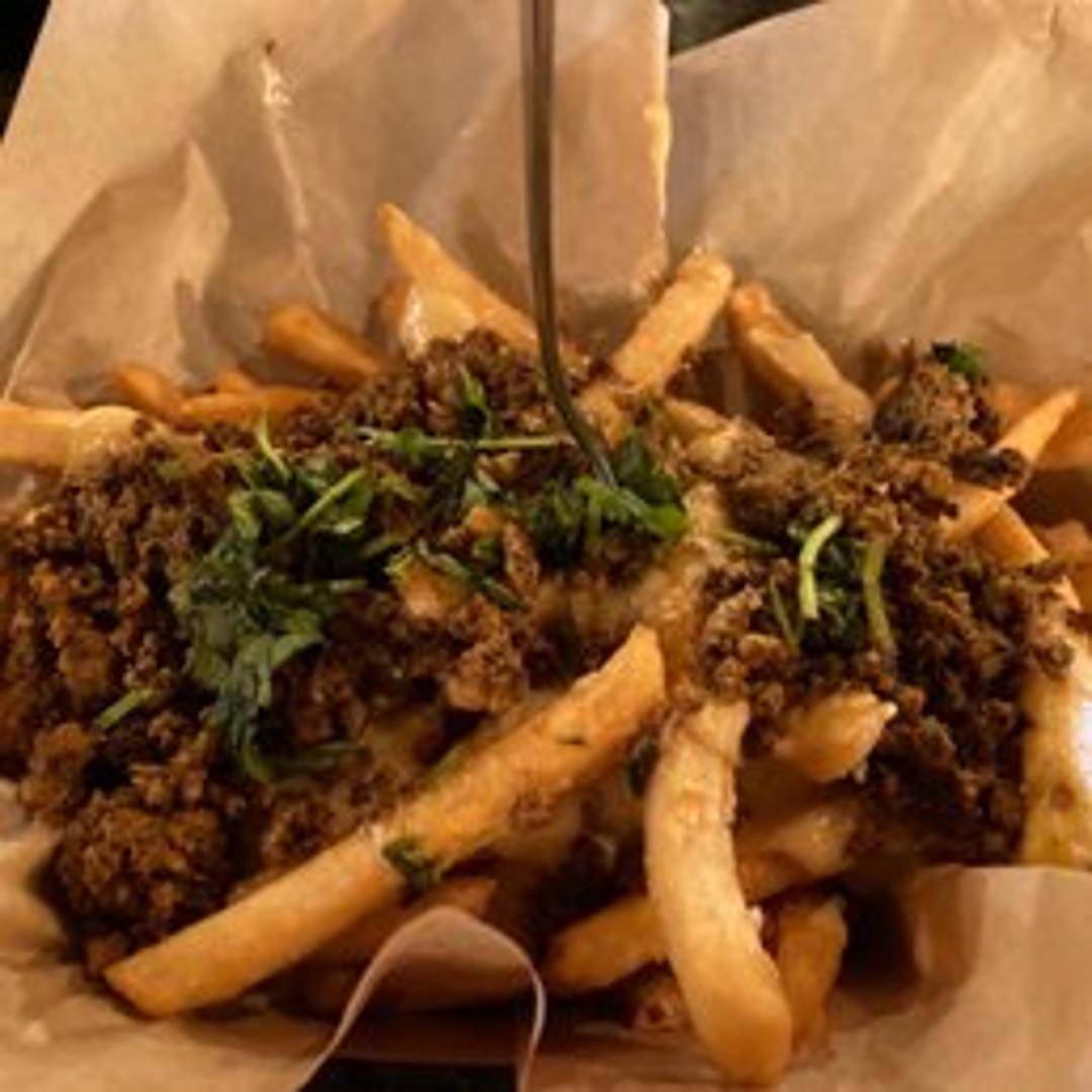 A creamy queso dip with chorizo sausage, served with tortilla chips.