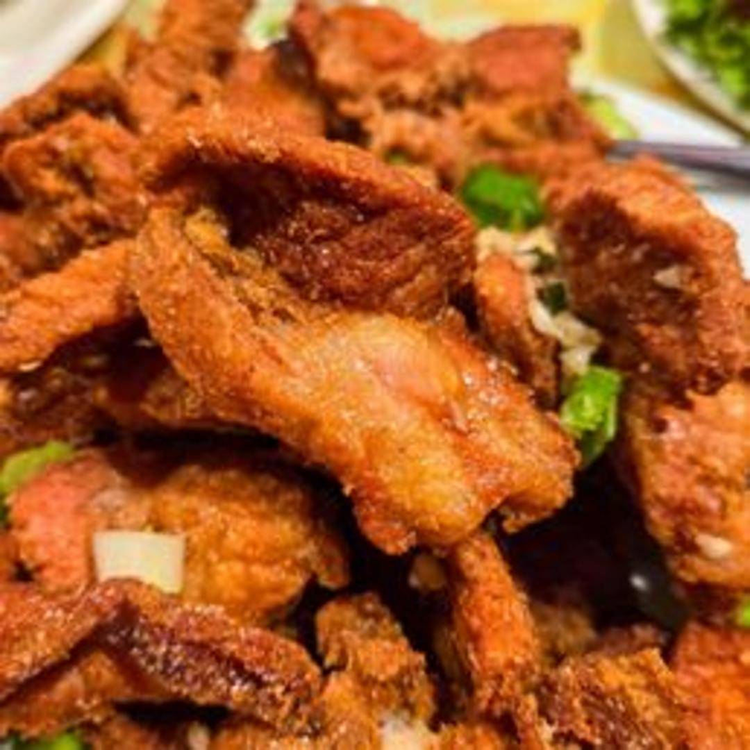 Tender pork chops, seasoned with a blend of salt and pepper, and then deep-fried to a crispy perfection. Often includes fried garlic, scallions, and chili peppers for added flavor and aroma. The result is a savory and slightly spicy dish.