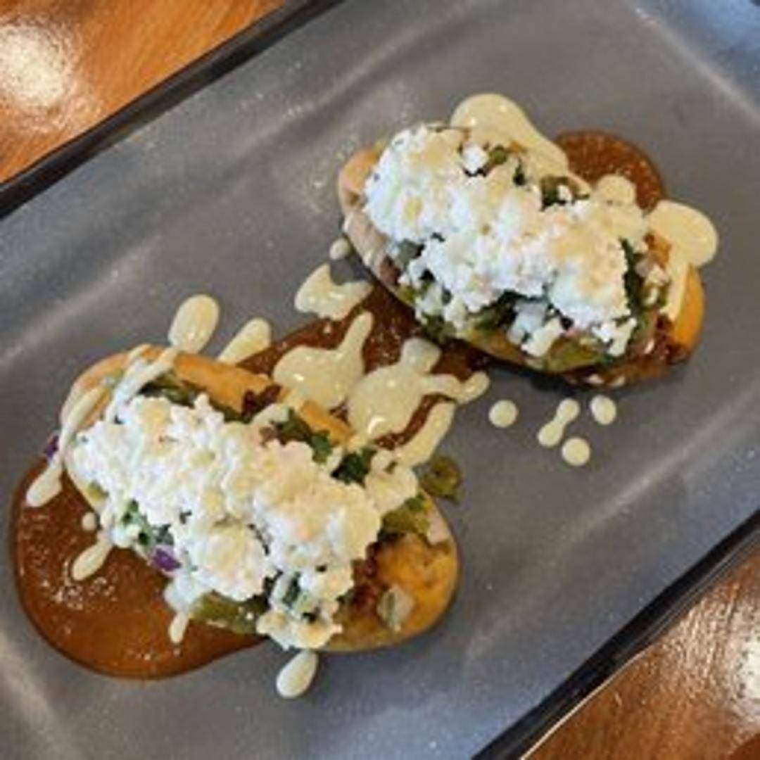 Thick, oval-shaped masa cakes filled with ingredients like beans, cheese, or potatoes, and then grilled or pan-fried. Often topped with salsa, nopales (cactus), and queso fresco.