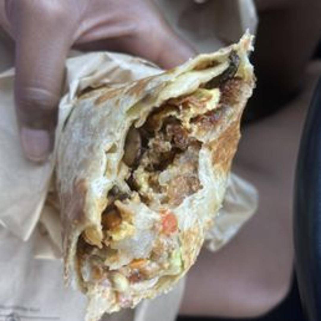 A hearty breakfast wrap filled with scrambled eggs, your choice of meat (bacon, sausage, or chorizo), cheese, potatoes, and salsa.