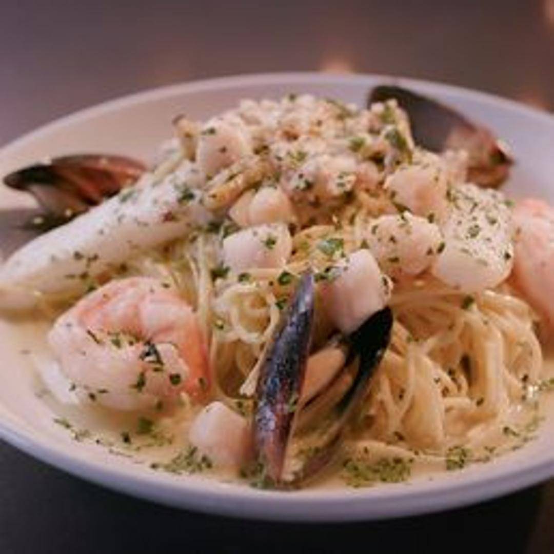 Pasta tossed with a medley of fresh seafood such as shrimp, mussels, clams, calamari, and scallops, often in a garlic white wine sauce or a light tomato sauce. Garnished with fresh parsley.