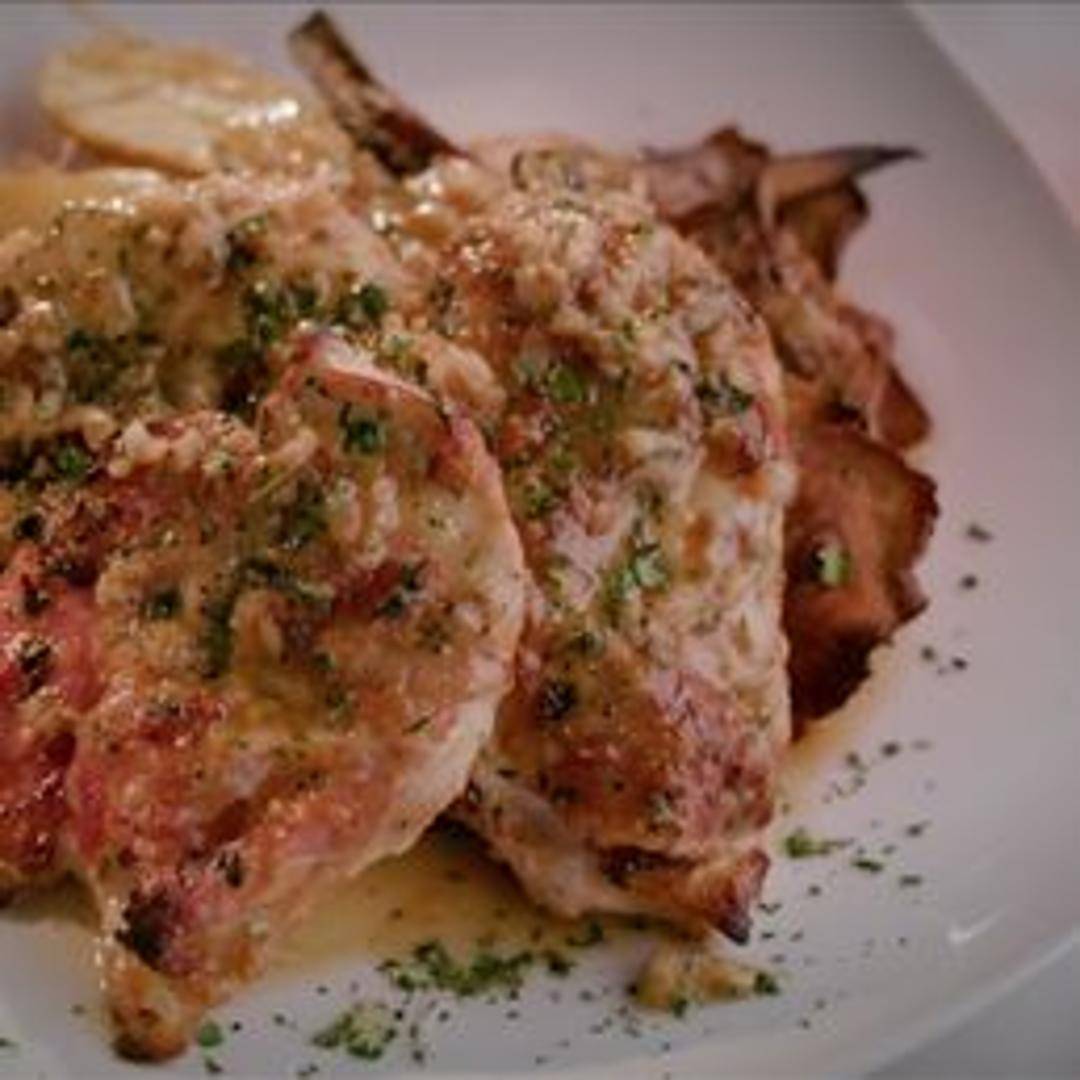 Tender chicken breast rolled with prosciutto and sage, simmered in a white wine sauce.