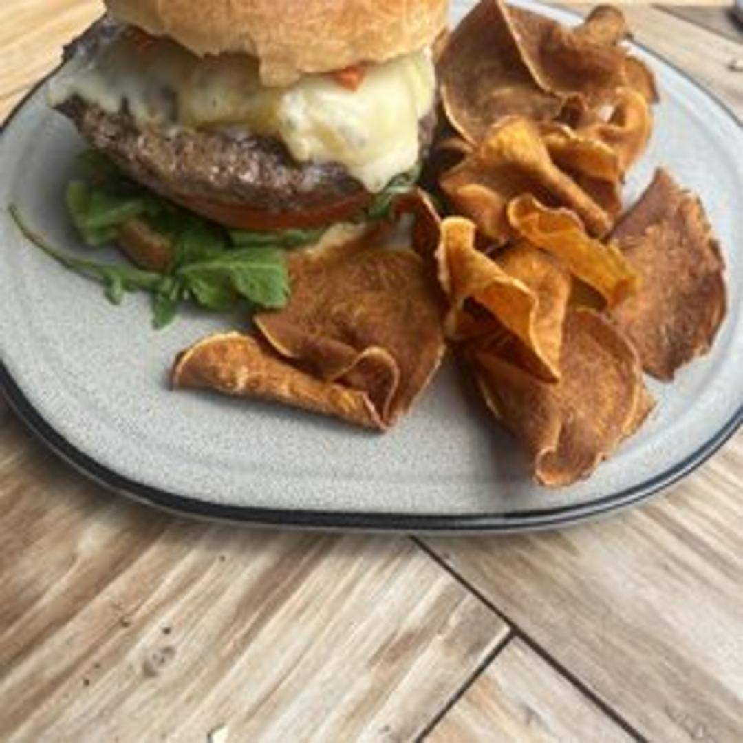 Our signature burger featuring a juicy beef patty, topped with your choice of cheese, lettuce, tomato, and onion on a toasted bun.