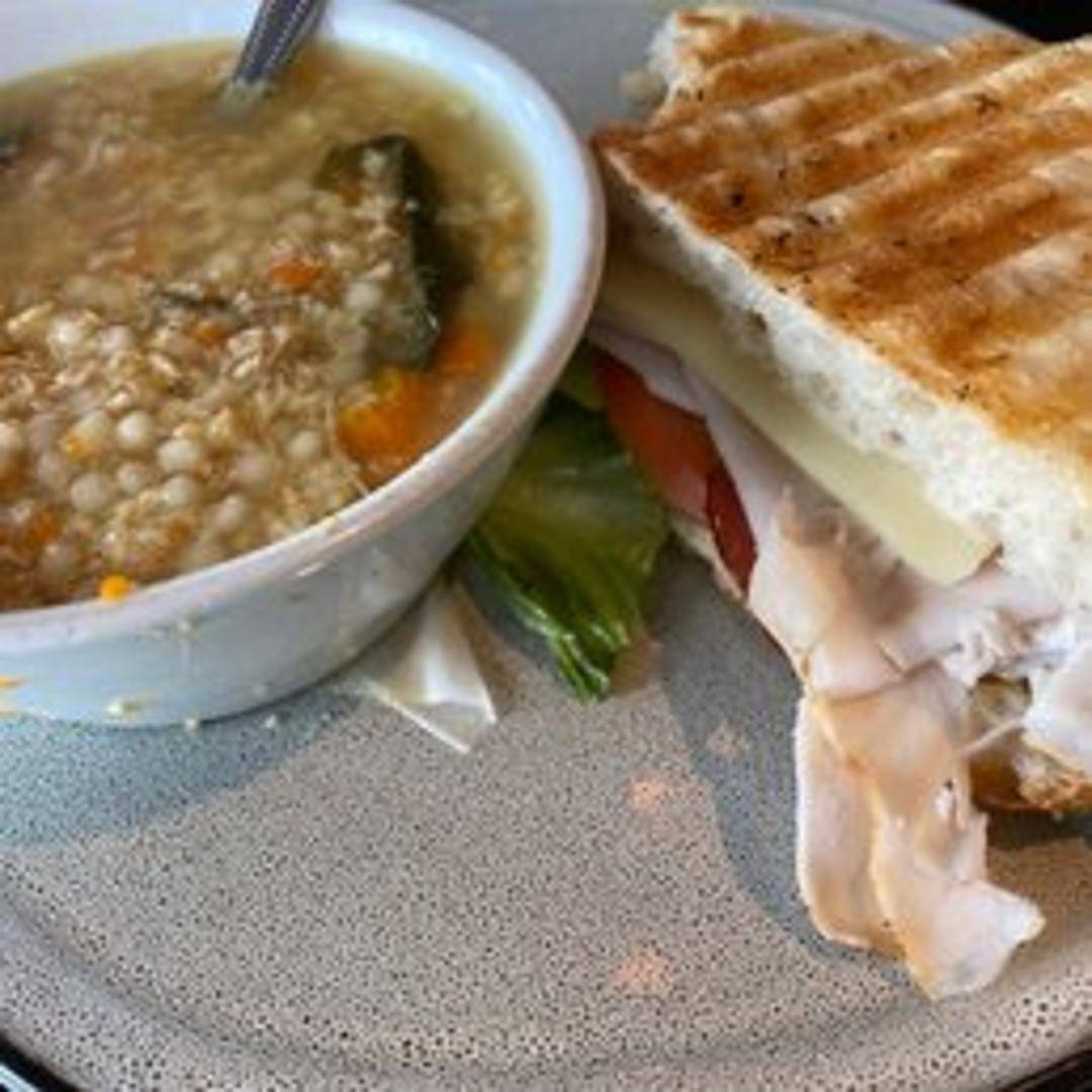 Italian egg drop soup with shredded chicken, spinach, and Parmesan cheese in a light chicken broth.