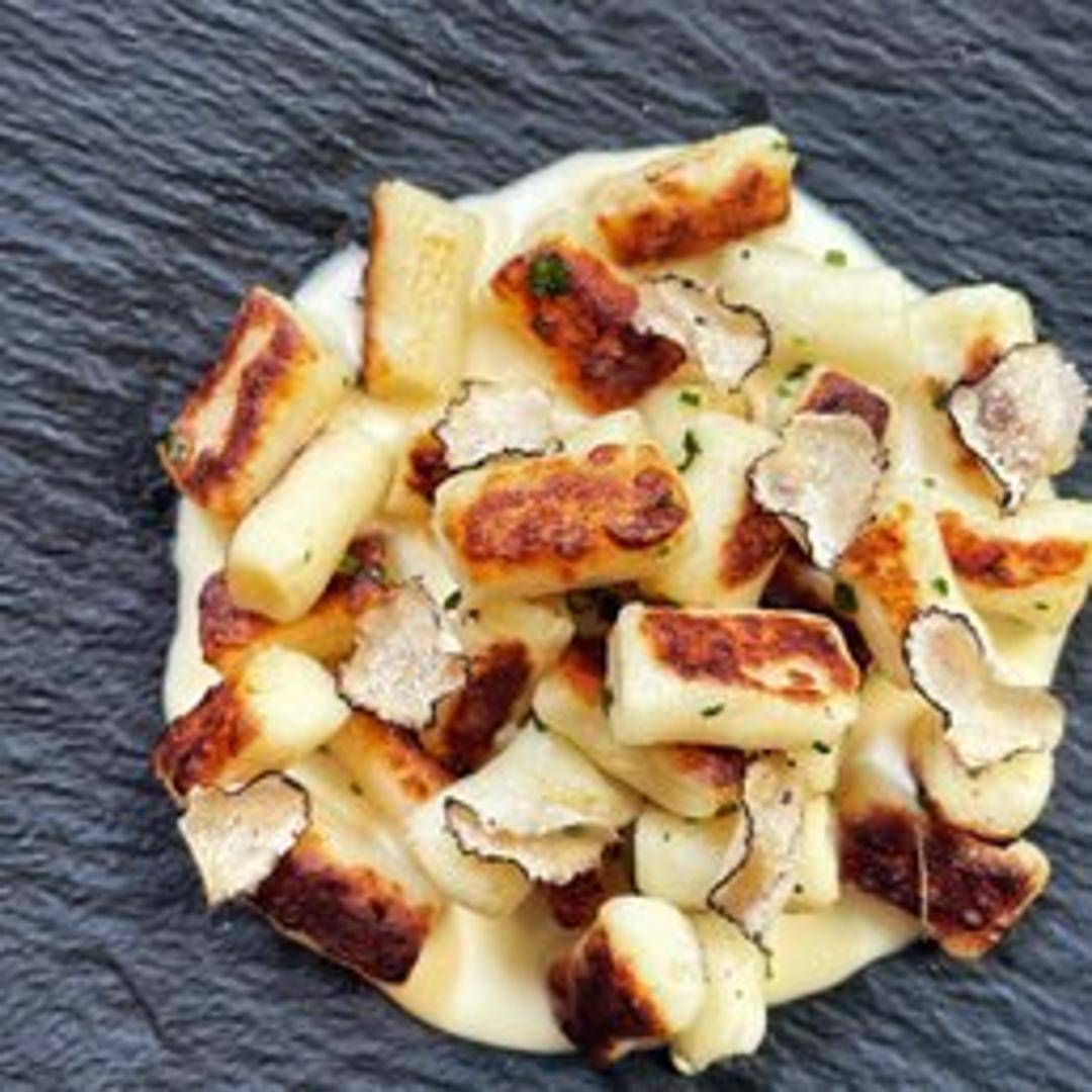 Handcrafted potato gnocchi are transformed into golden, crispy delights, pan-fried to achieve a satisfyingly crisp exterior while retaining their soft, pillowy interior. These savory dumplings are a delightful textural experience, offering a unique twist on a traditional Italian staple, often served with a complementary sauce or as a unique accompaniment.