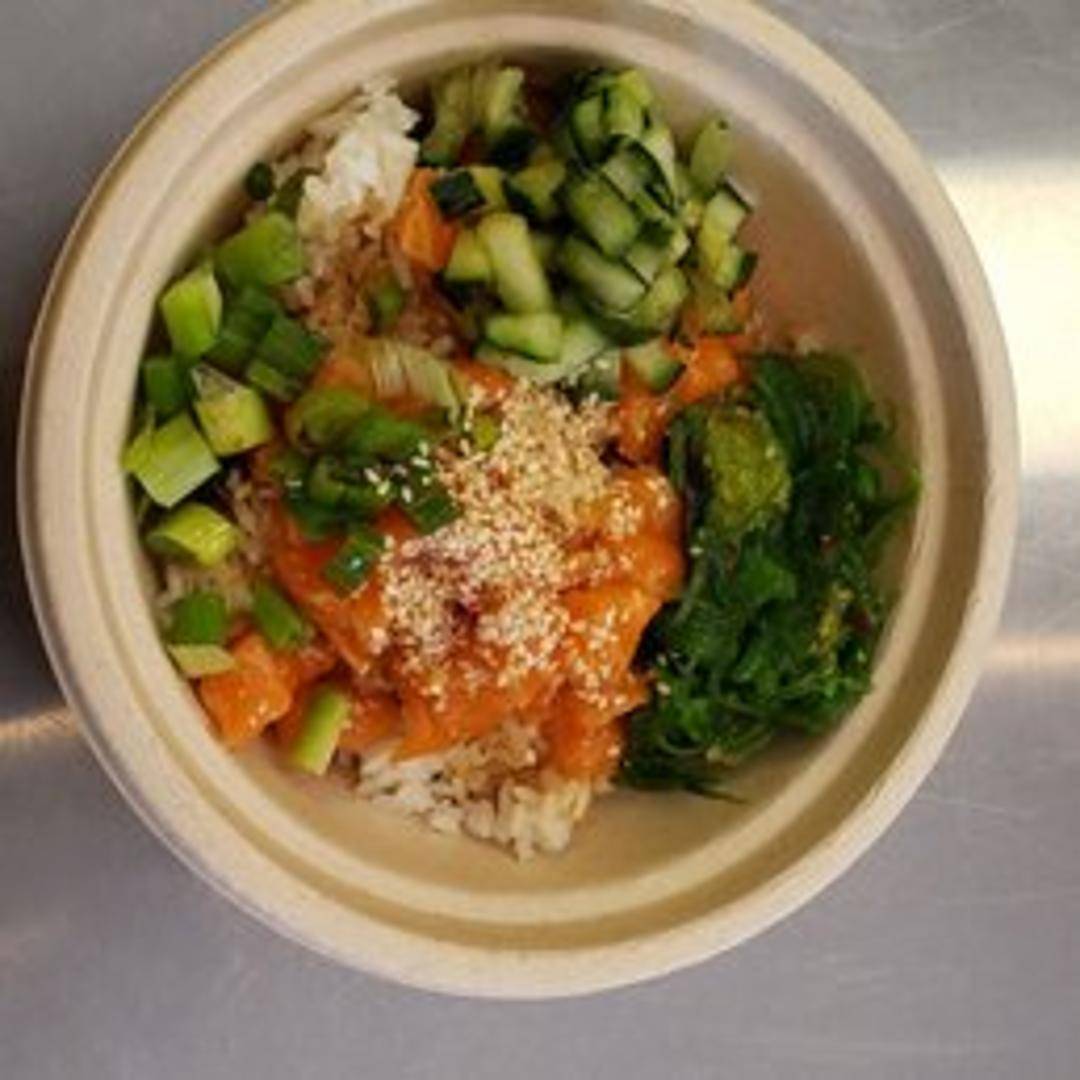 A delectable bowl overflowing with fresh salmon. Served on a bed of sushi rice with avocado, edamame, seaweed salad, masago, and drizzled with your choice of signature sauces.