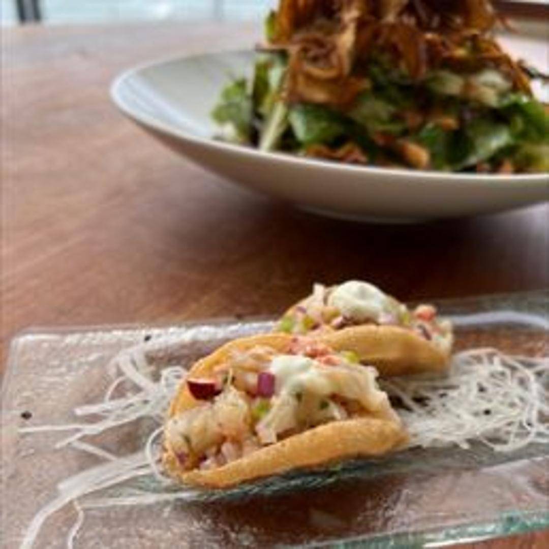 Three delicate tacos featuring succulent lobster meat, expertly seasoned and complemented by a vibrant array of fresh toppings, all served in a soft and flavorful shell. Often includes components like pico de gallo, avocado, and a signature Nobu sauce.