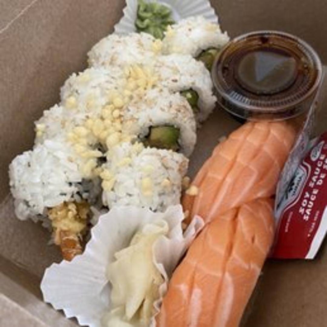 A classic sushi roll featuring crispy, lightly battered shrimp tempura, cucumber, and avocado, wrapped in seasoned sushi rice and nori seaweed. Typically served with a drizzle of sweet and savory eel sauce and spicy mayonnaise.