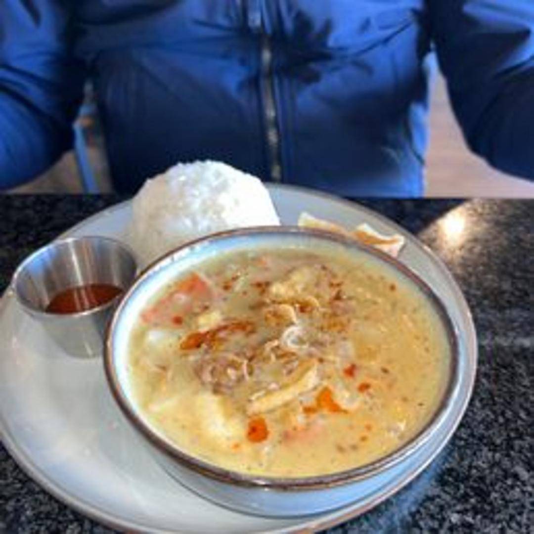 A mild and fragrant curry cooked with coconut milk, potatoes, carrots, and onions.
