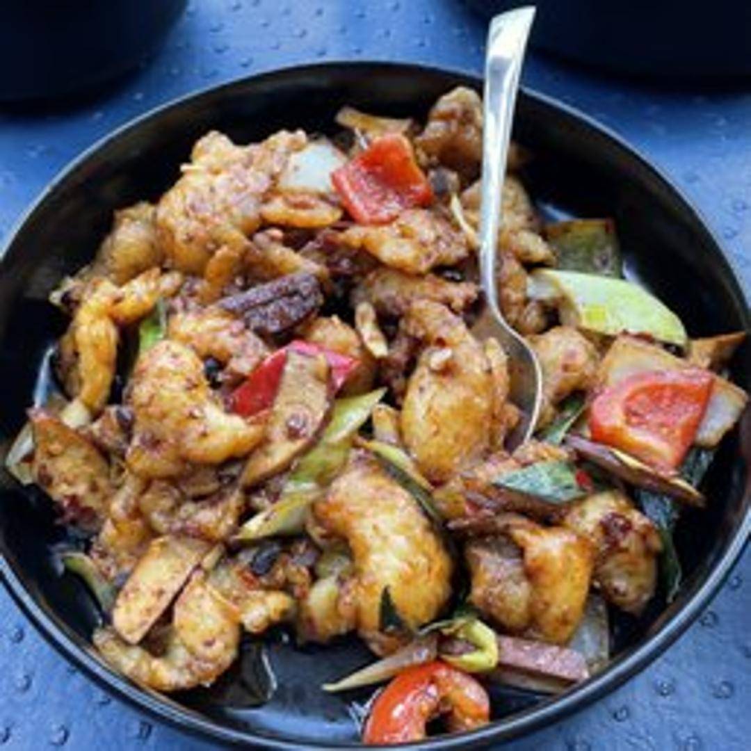 Fish that is first boiled, then stir-fried with vegetables in a spicy and savory sauce. A flavorful and satisfying dish with crispy edges.
