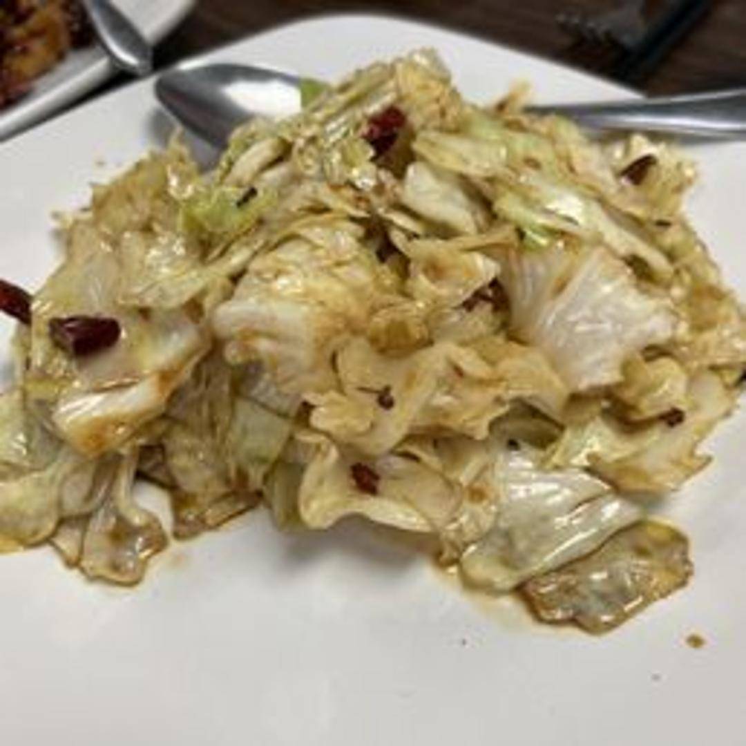 Simple yet flavorful stir-fried cabbage prepared in a home-style manner. Seasoned with garlic, soy sauce, and other traditional spices for a comforting and satisfying side dish.