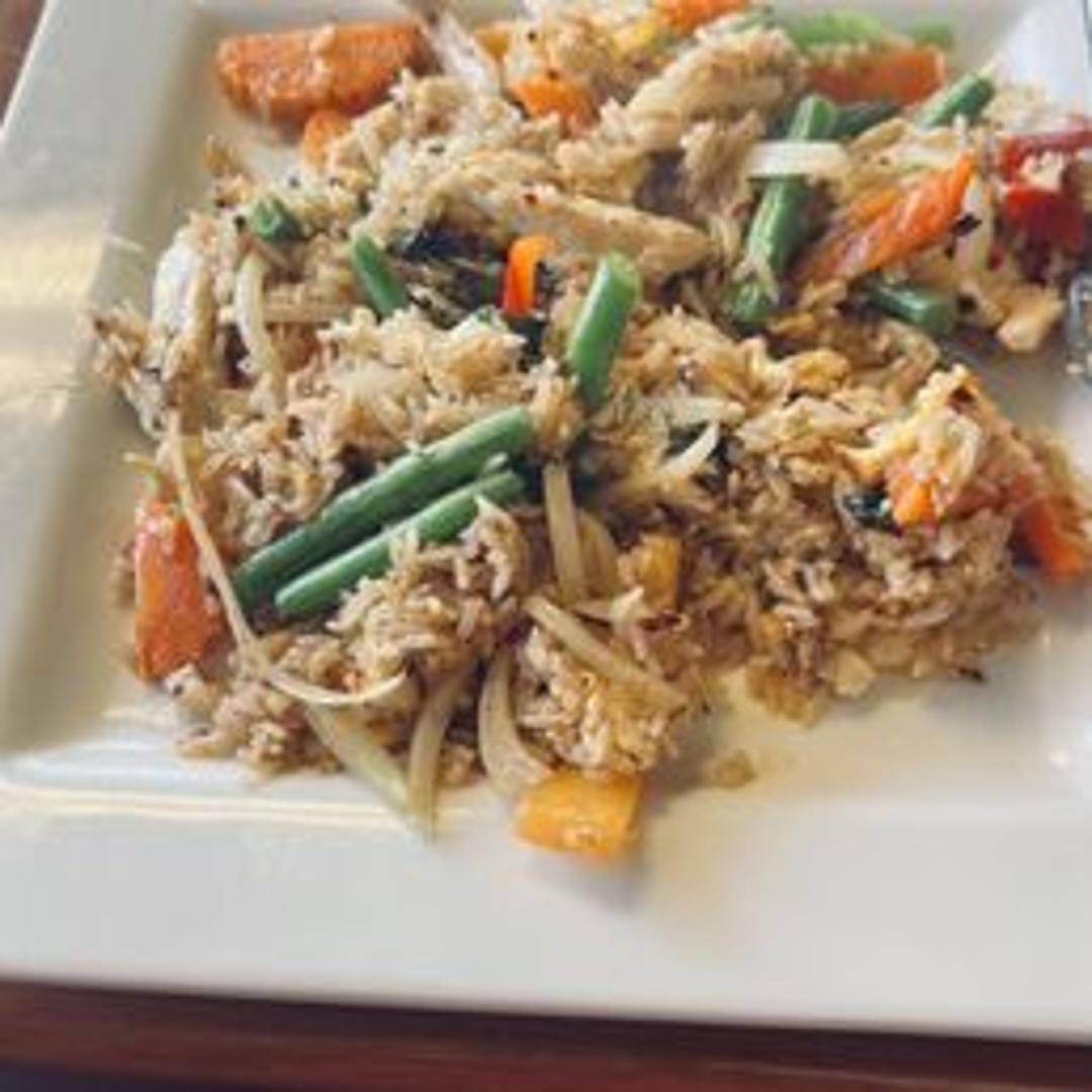 Savory fried rice stir-fried with Thai basil, egg, onions, bell peppers, and your choice of protein (chicken, pork, beef, tofu, or shrimp). Seasoned with a flavorful blend of soy sauce and spices. Aromatic and slightly spicy.