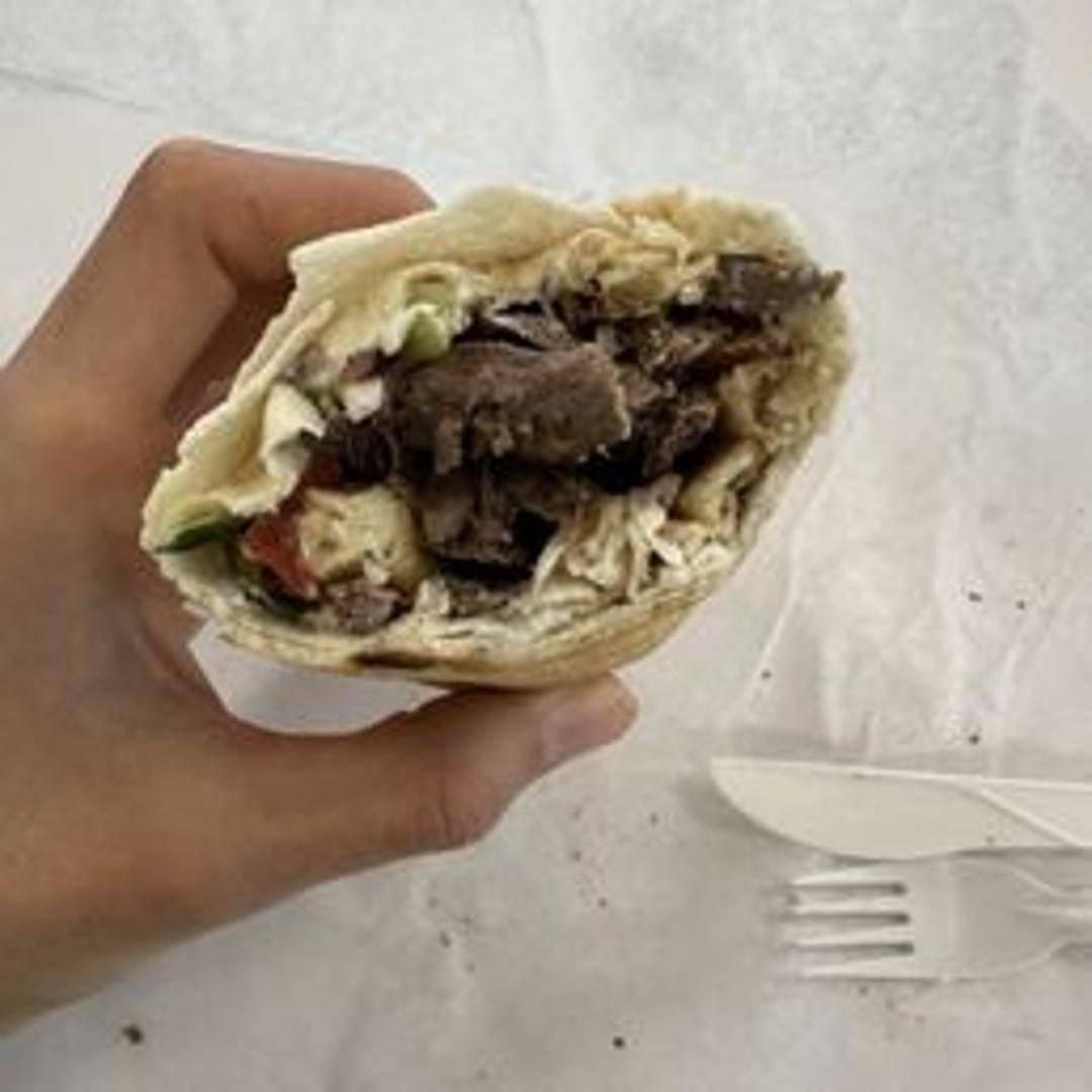A flavorful combination plate featuring a choice of two: Chicken Shawerma, Beef Shawerma, or Gyro. Includes rice, hummus, salad, and pita bread.