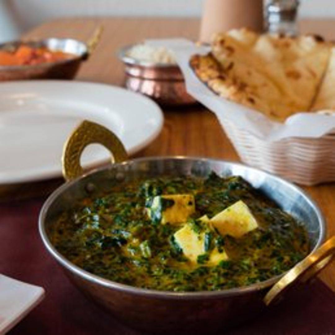 A classic North Indian dish featuring creamy spinach (saag) and cubes of fresh Indian cheese (paneer). The spinach is cooked with garlic, ginger, onions, and spices, creating a flavorful and comforting vegetarian delight.