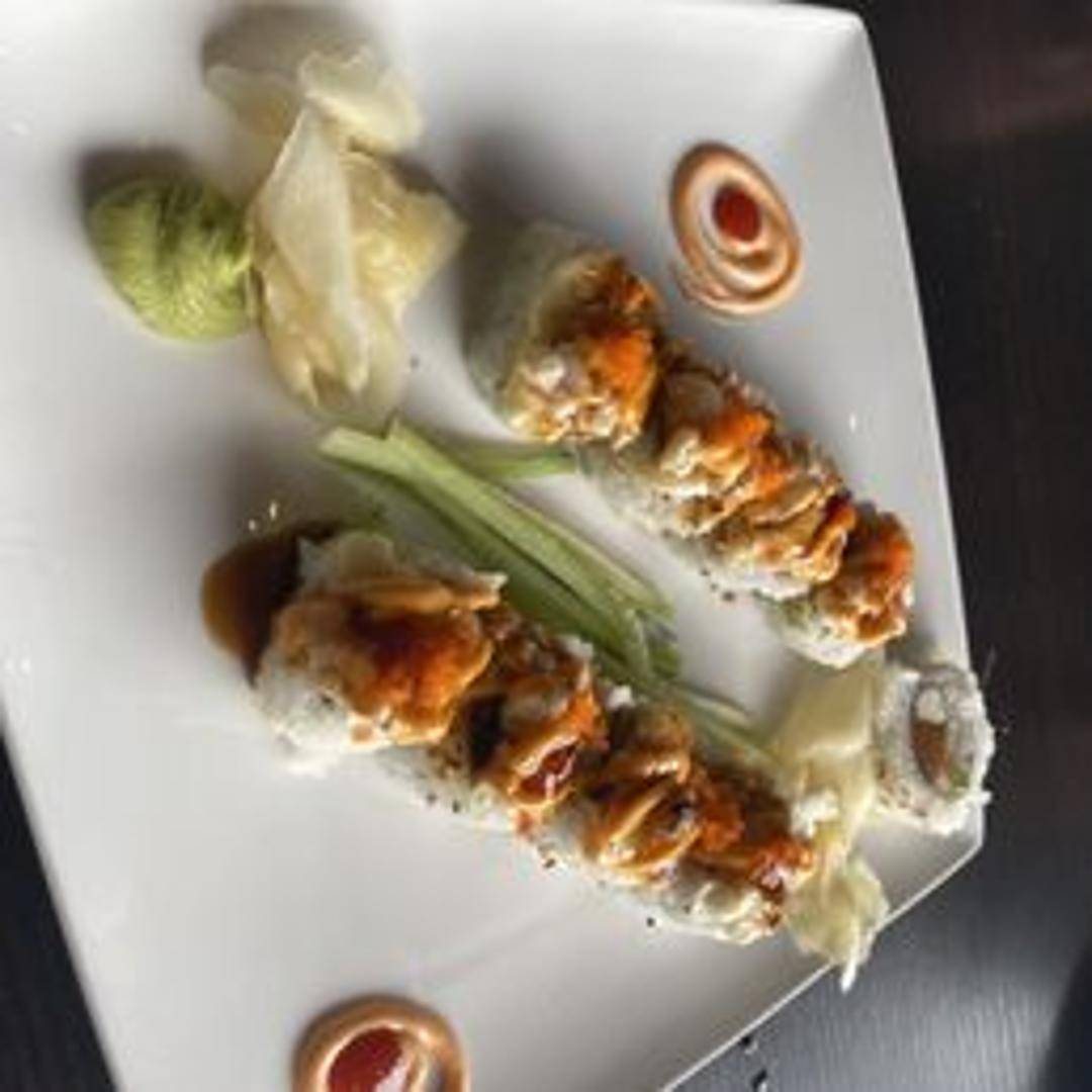A sushi roll featuring baked or broiled seafood (often scallops or shrimp) with a creamy, spicy sauce. Usually contains vegetables like avocado and cucumber.